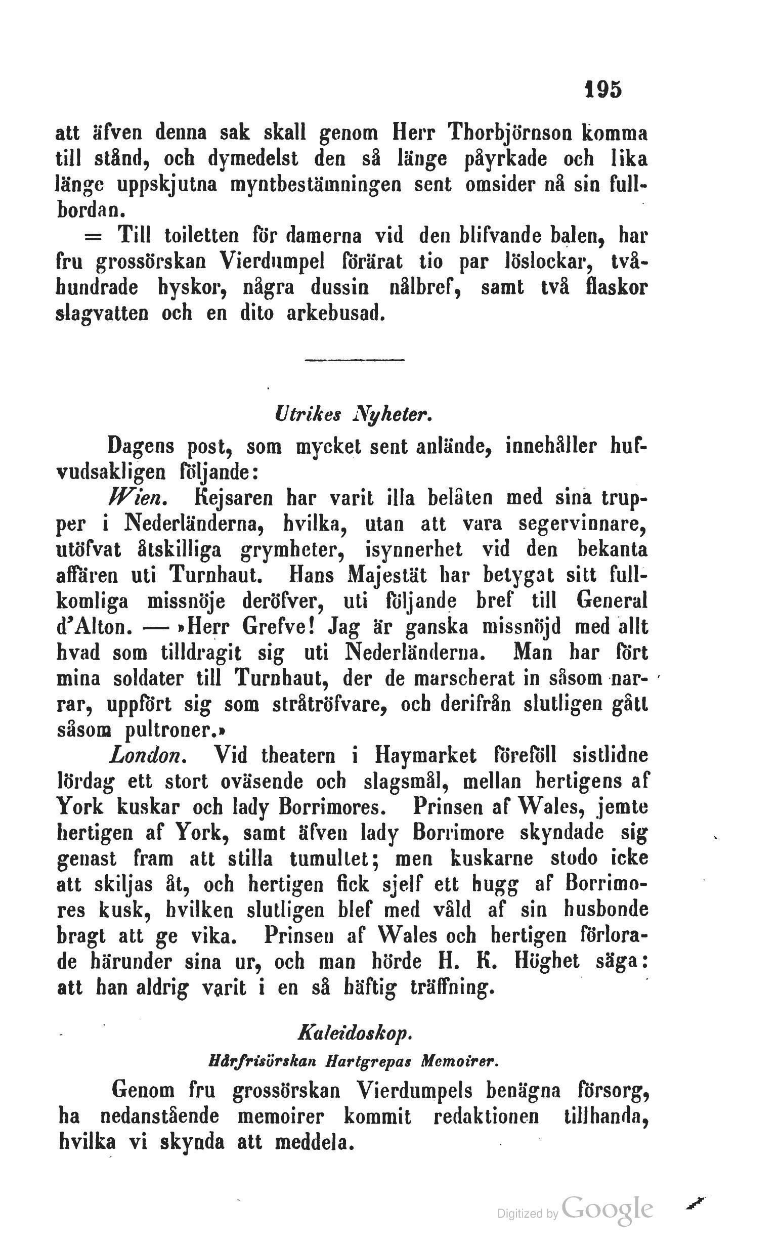 lördag ett stort oväsende och slagsmål, mellan hertigens af