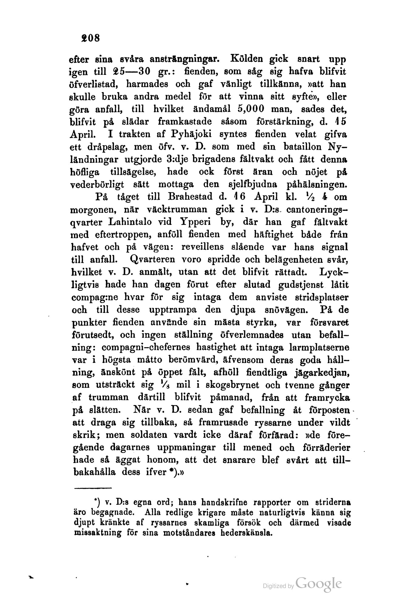 *) v. D:s egna ord; hans handskrifne rapporter om striderna