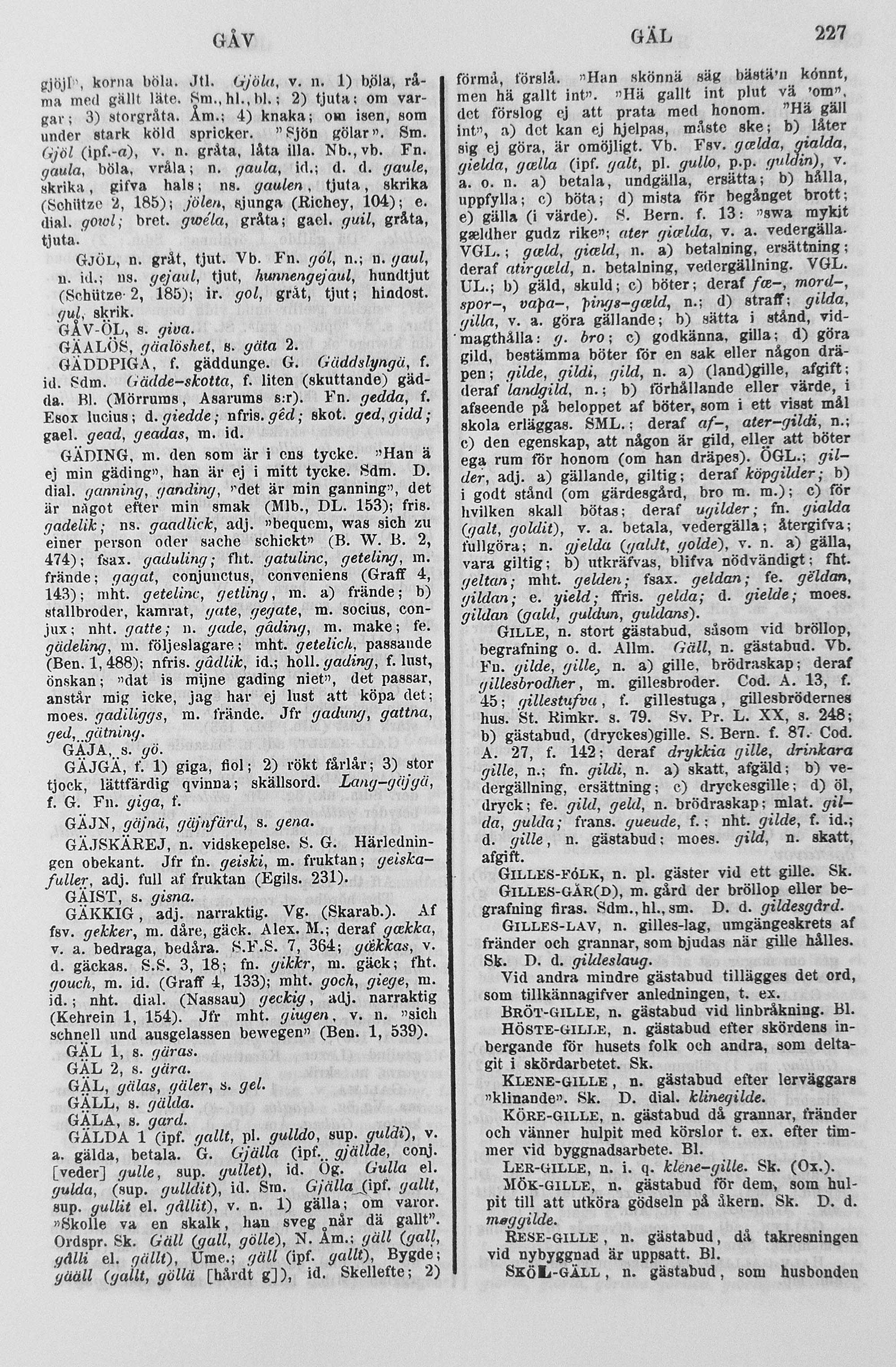 Ordspr. Sk. Gäll (gall, gölle), N. Åm.; gäll (gall,