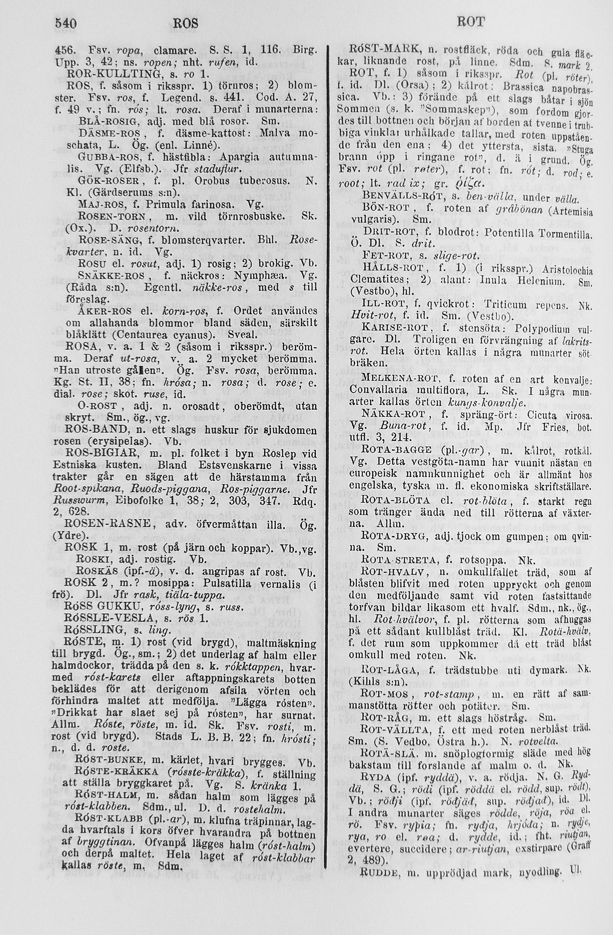 ROS, f. såsom i riksapr. 1) törnros; 2)