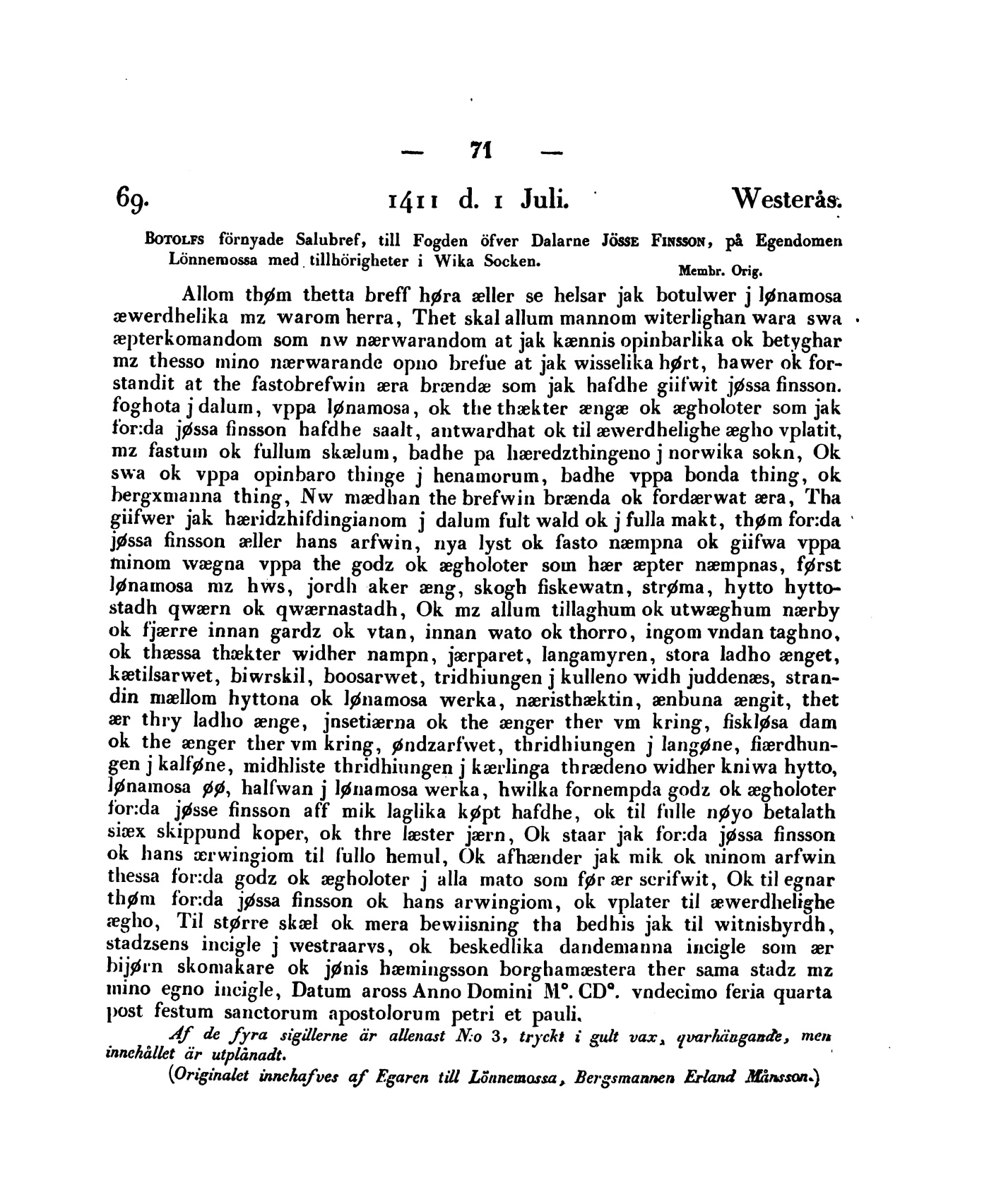 Botolfs förnyade Salubref, till Fogden öfver Dalarne JÖSSE Finsson, på Egendomen