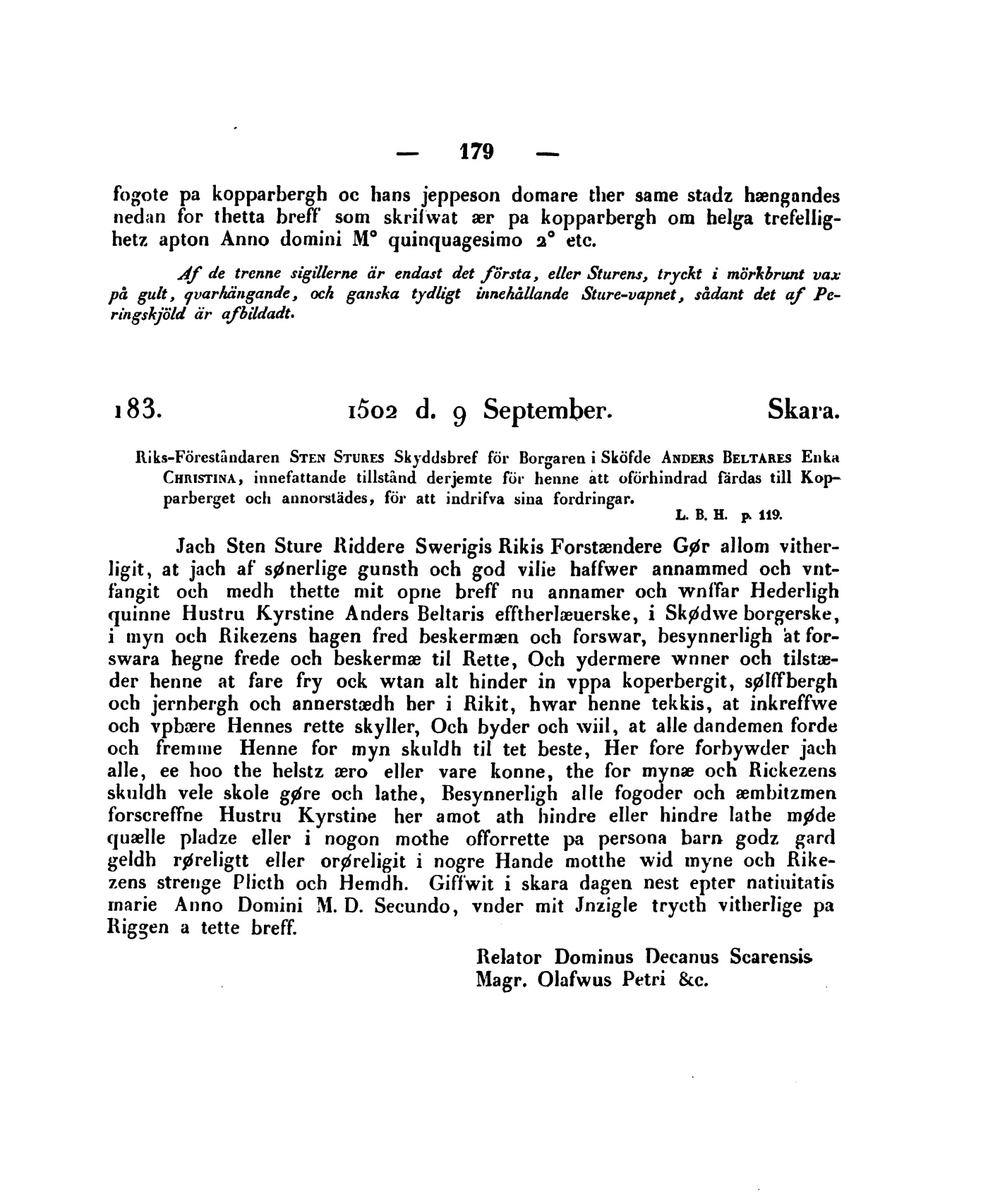 Riks-Föreständaren Sten Stures Skyddsbref för Borgaren i Sköfde Anders Beltares En ka