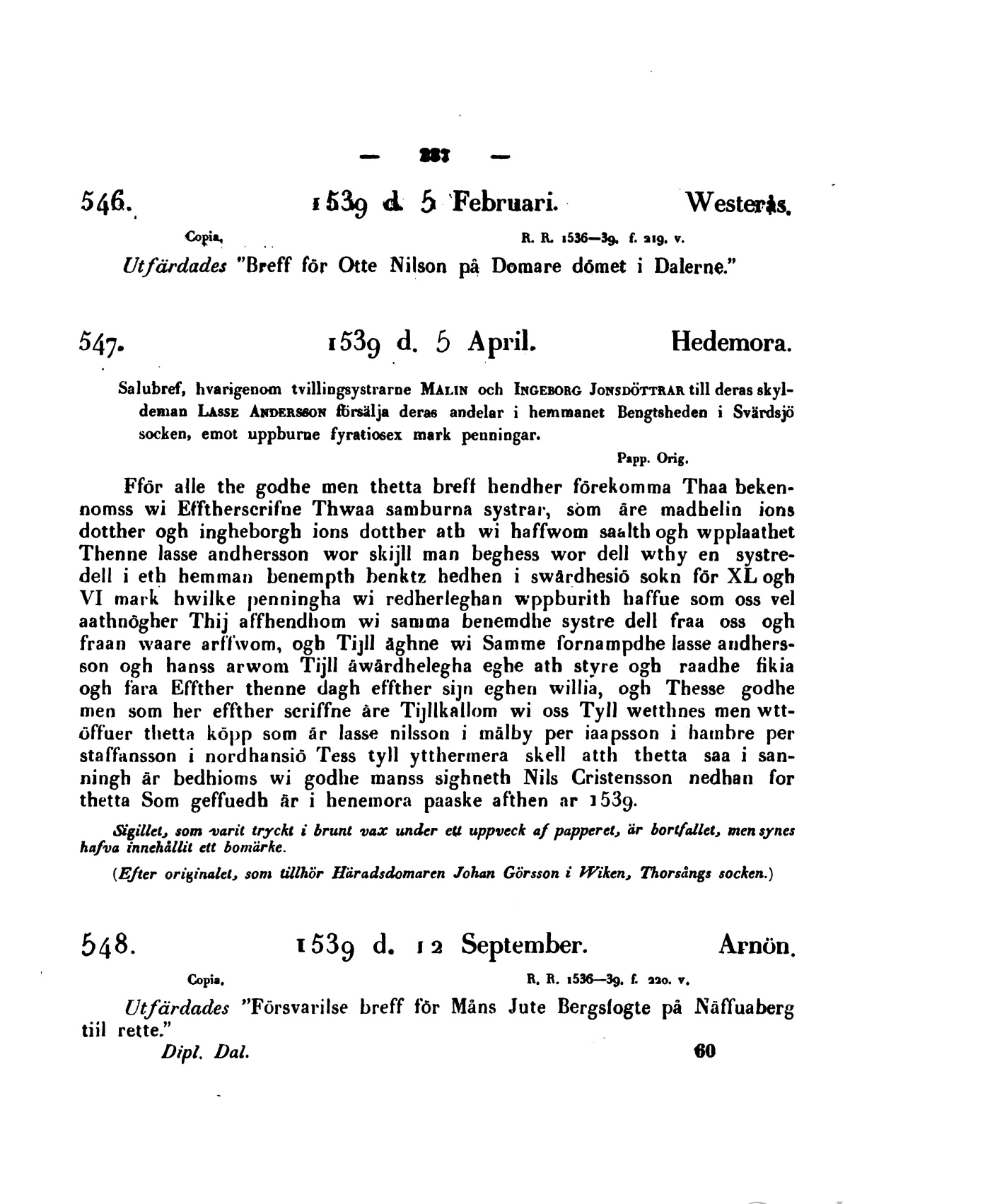Utfärdades ”Breff för Otte Nilson på Domare dømet i Dalerne.”