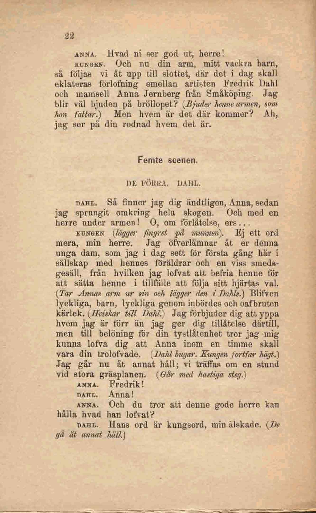vara din trolofvade. (Dahl bugar. Kungen fortfar högt.)
