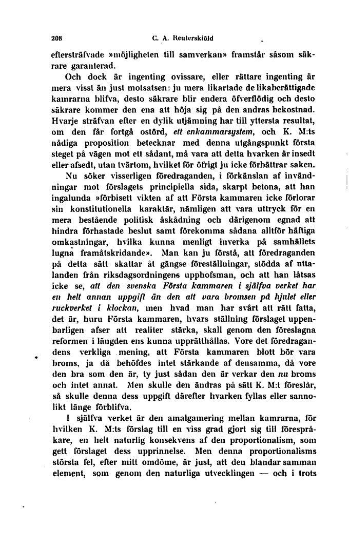 om den får fortgå ostörd, ett enkammarsystem, och K. M:ts