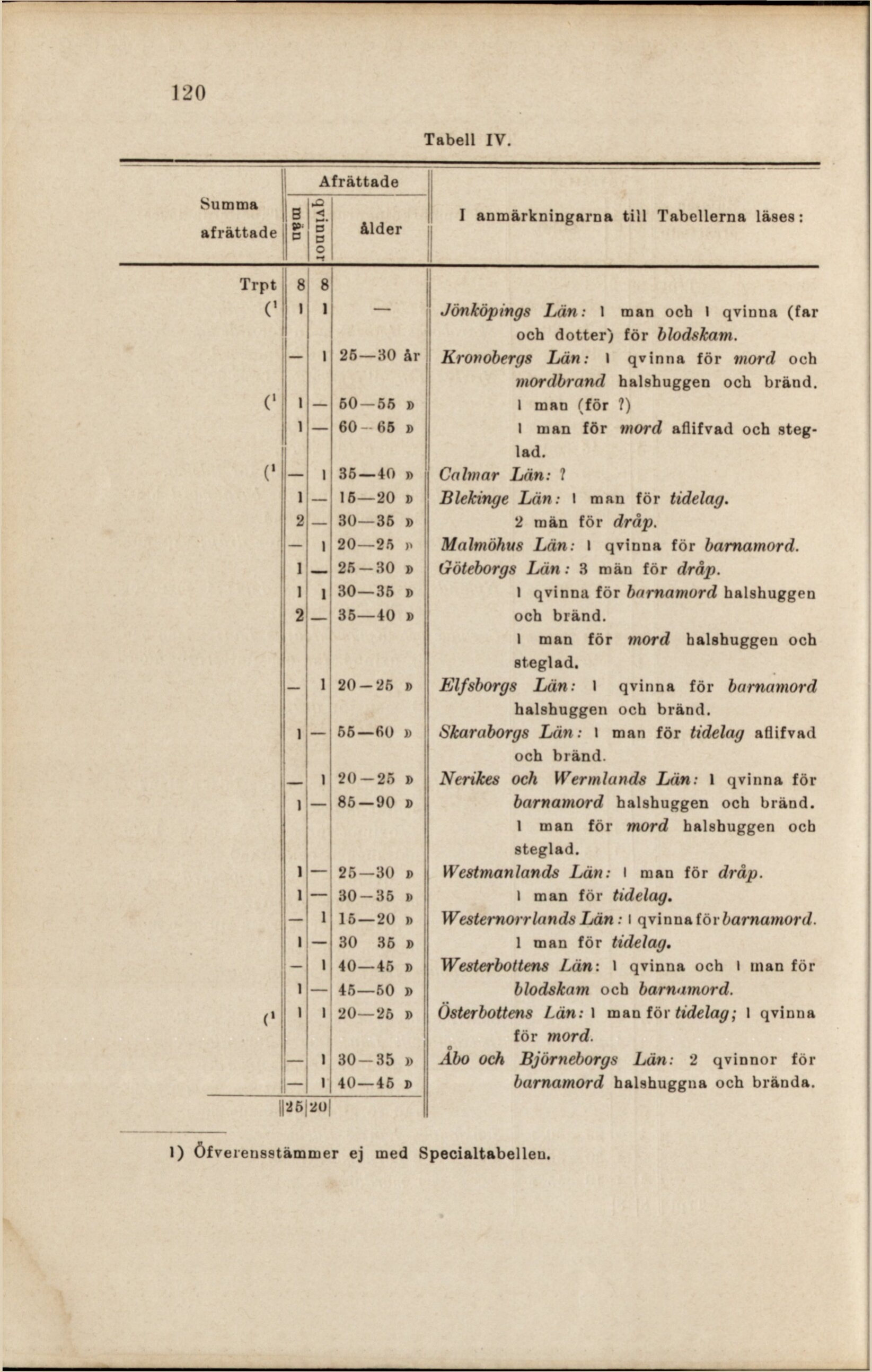 1) öfverensstämmer ej med Specialtabellen.