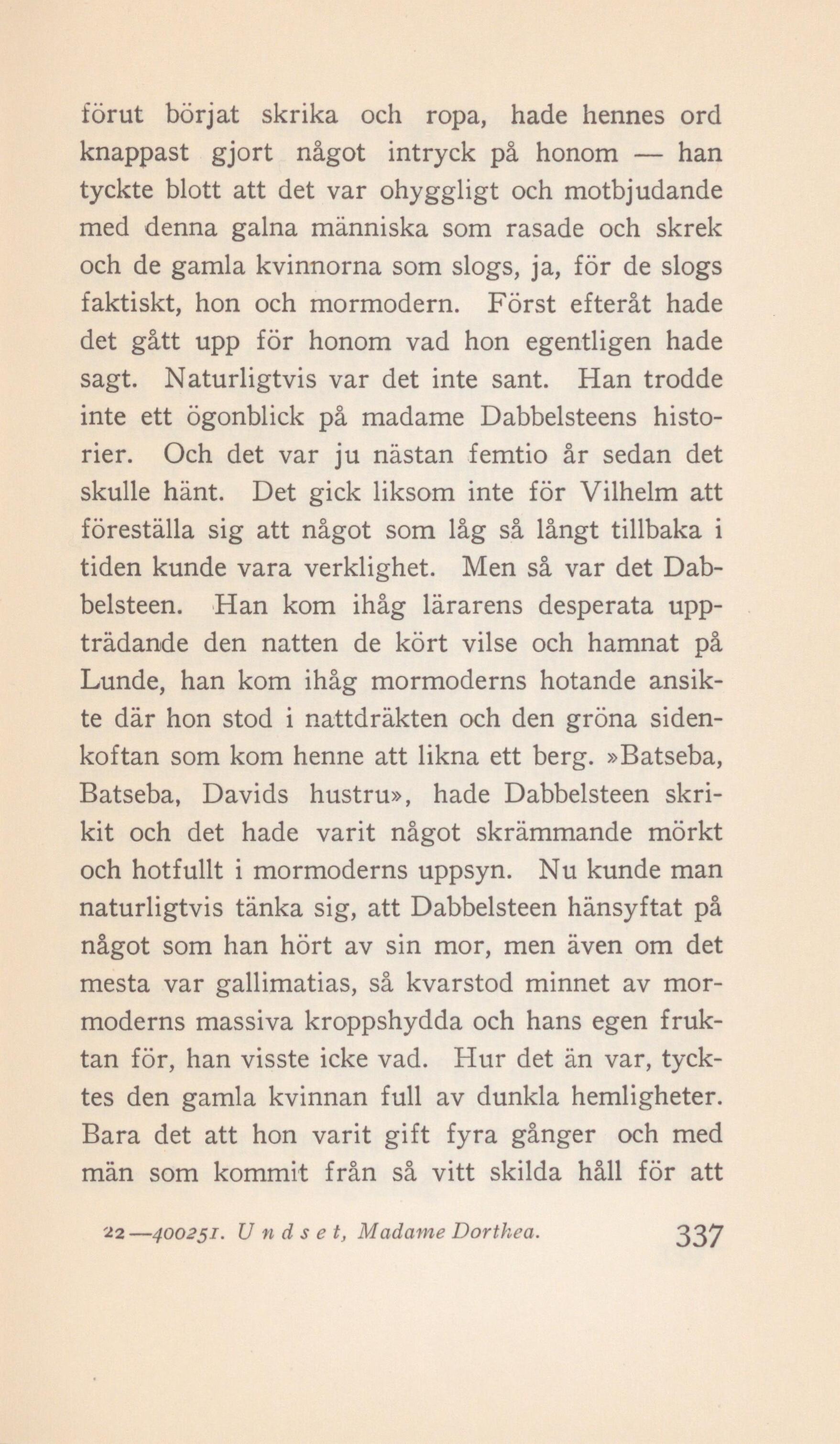 sidenkoftan som kom henne att likna ett berg. »Batseba,