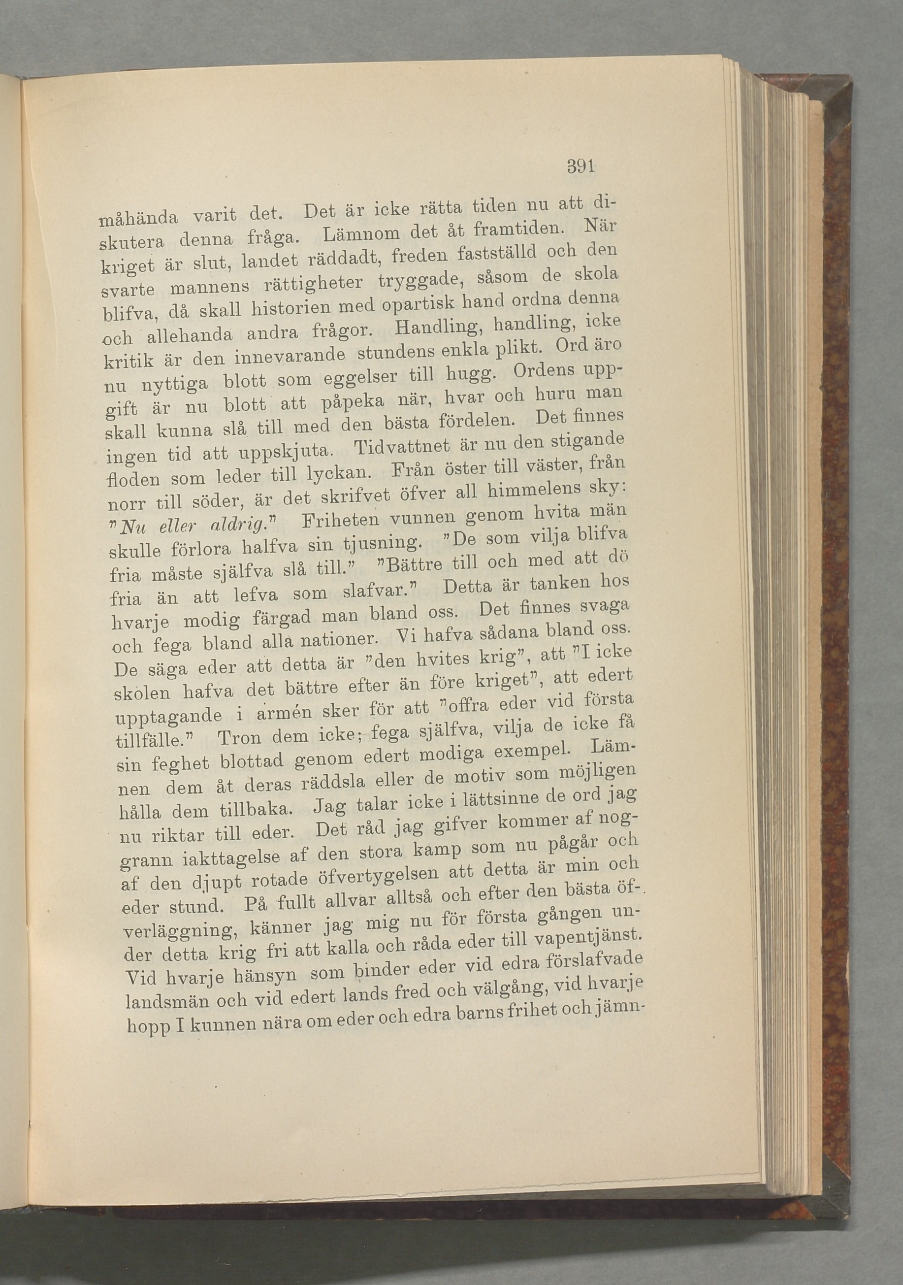 ” Nu eller aldrig." Friheten vunnen genom hvita man