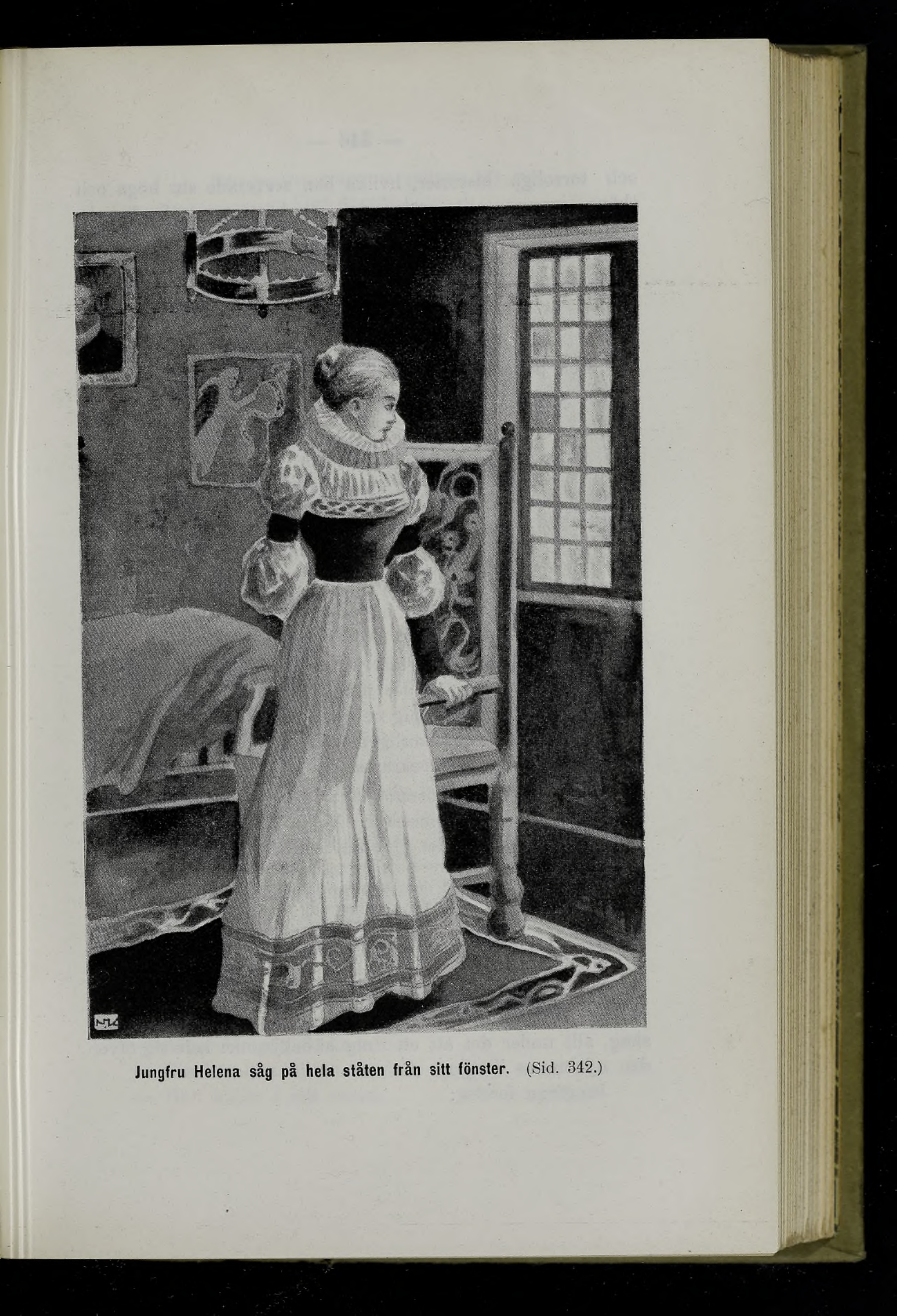 Jungfru Helena såg på hela ståten från sitt fönster. (Sid. 342.)