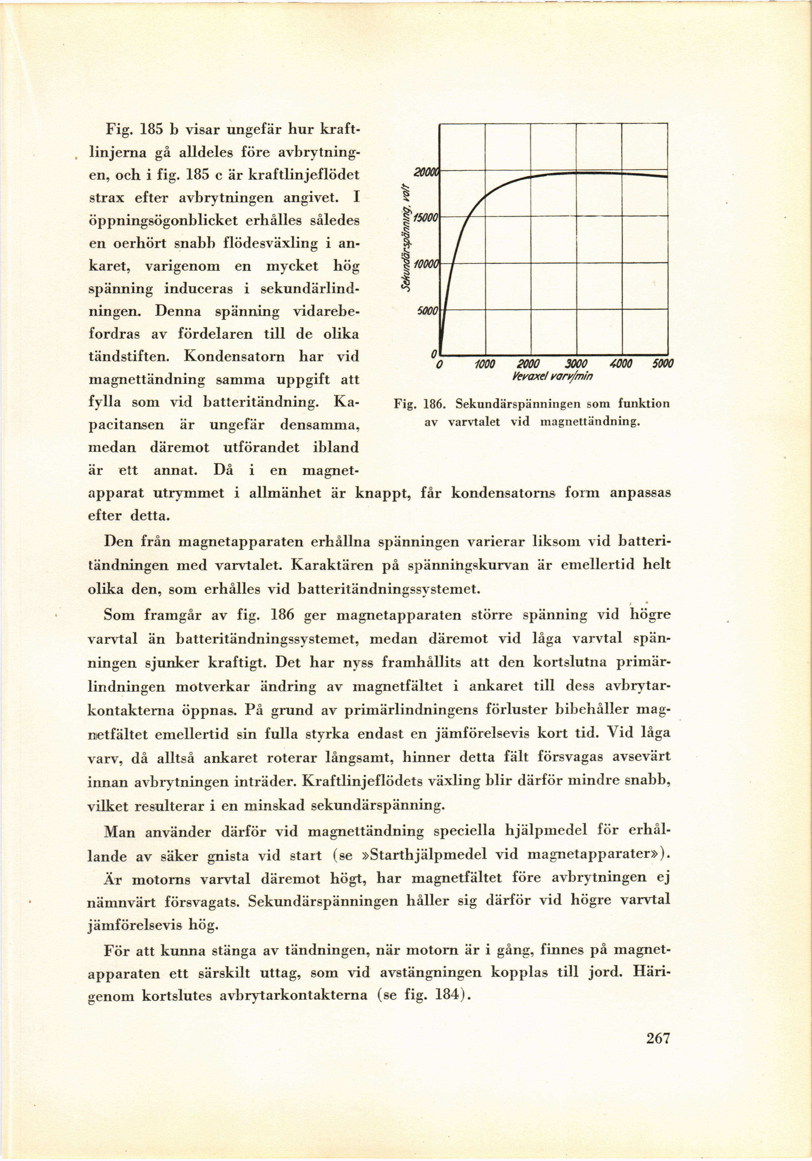 Som framgår av fig. 186 ger magnetapparaten större spänning vid högre