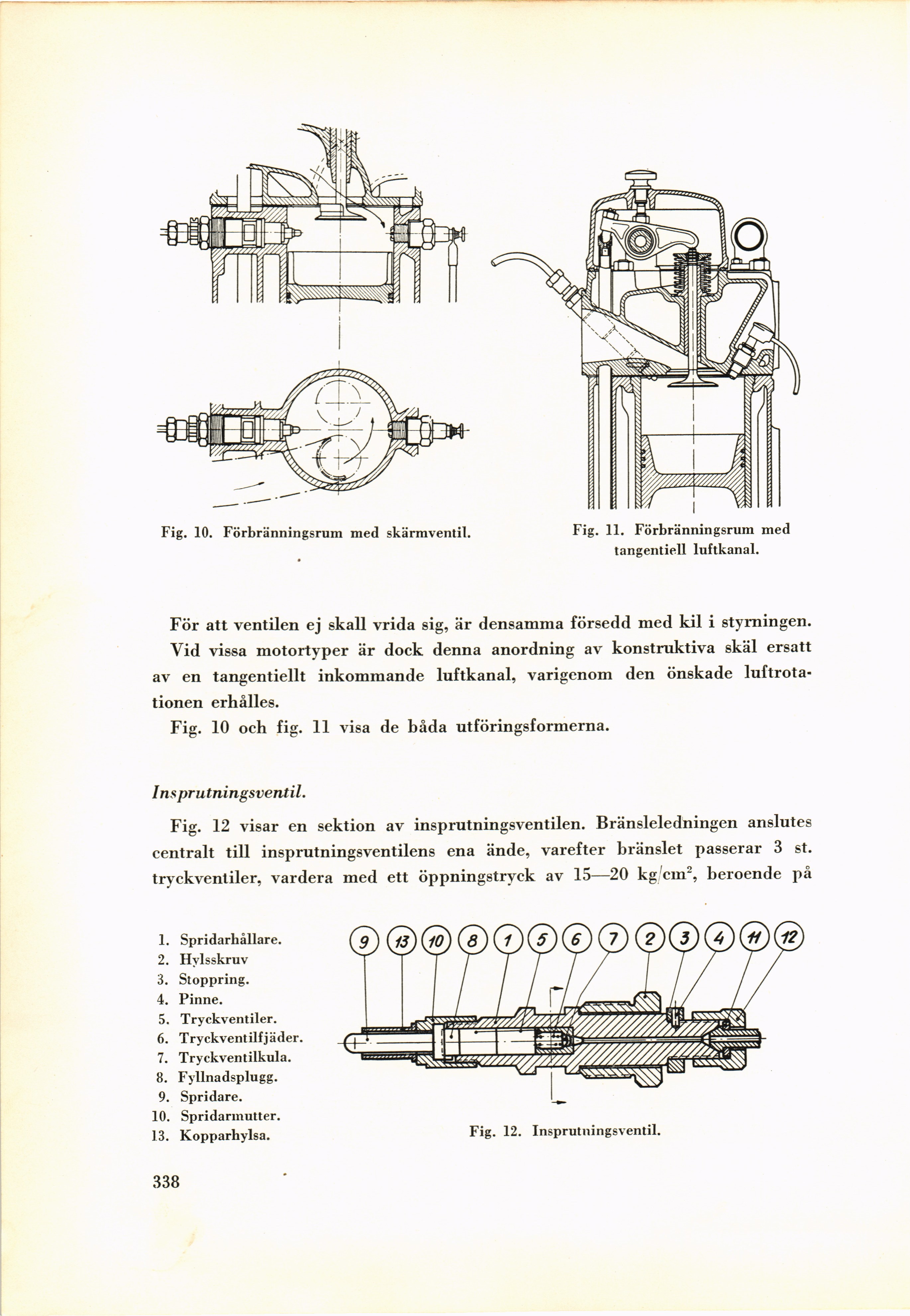 Fig. 12 visar en sektion av insprutningsventilen. Bränsleledningen anslutes