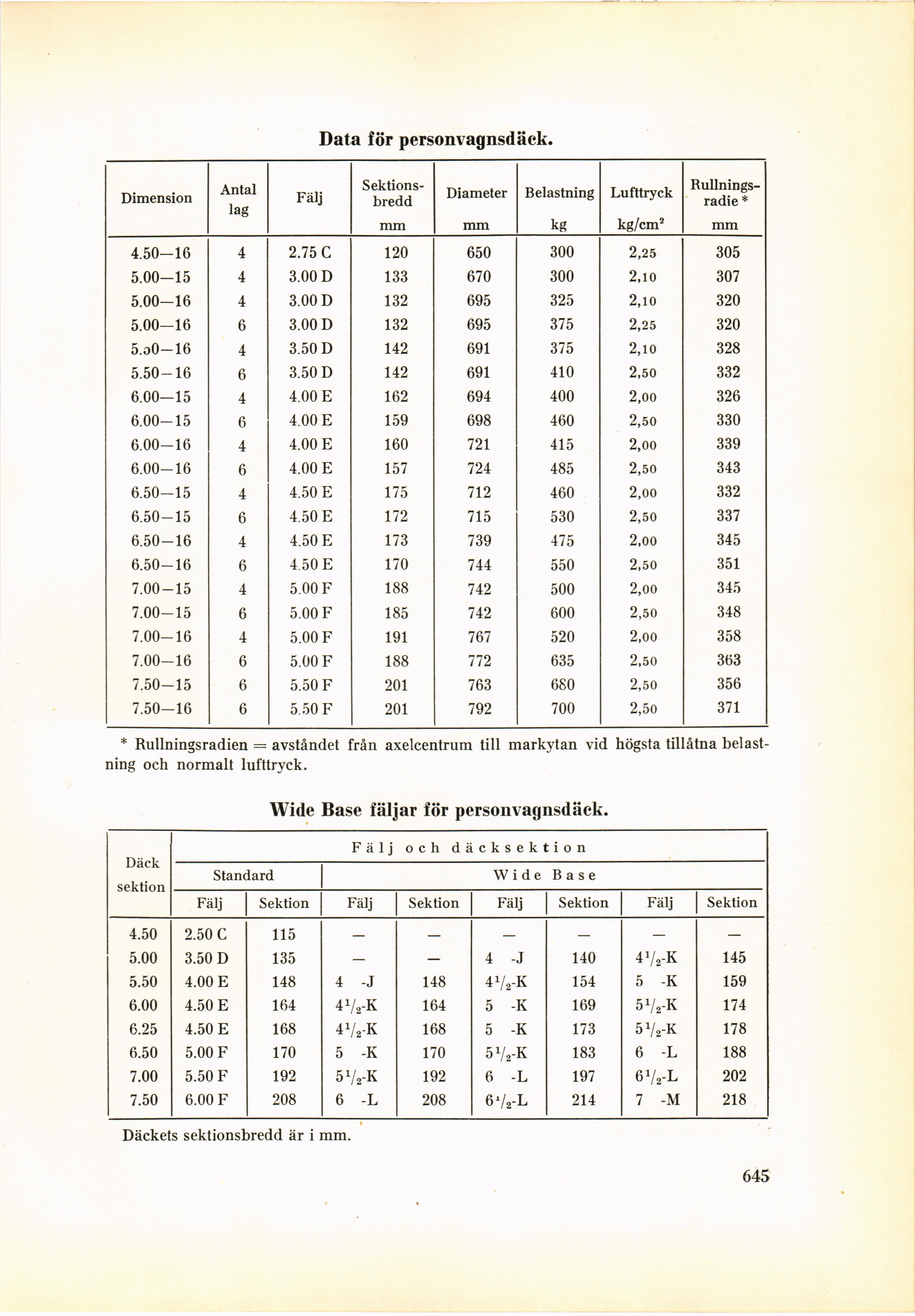 Dimension	Antal lag	Fälj	[-Sektionsbredd-]	{+Sektions- bredd+}	Diameter	Belastning	Lufttryck	[-Rullningsradie-]	{+Rullnings- radie+} *