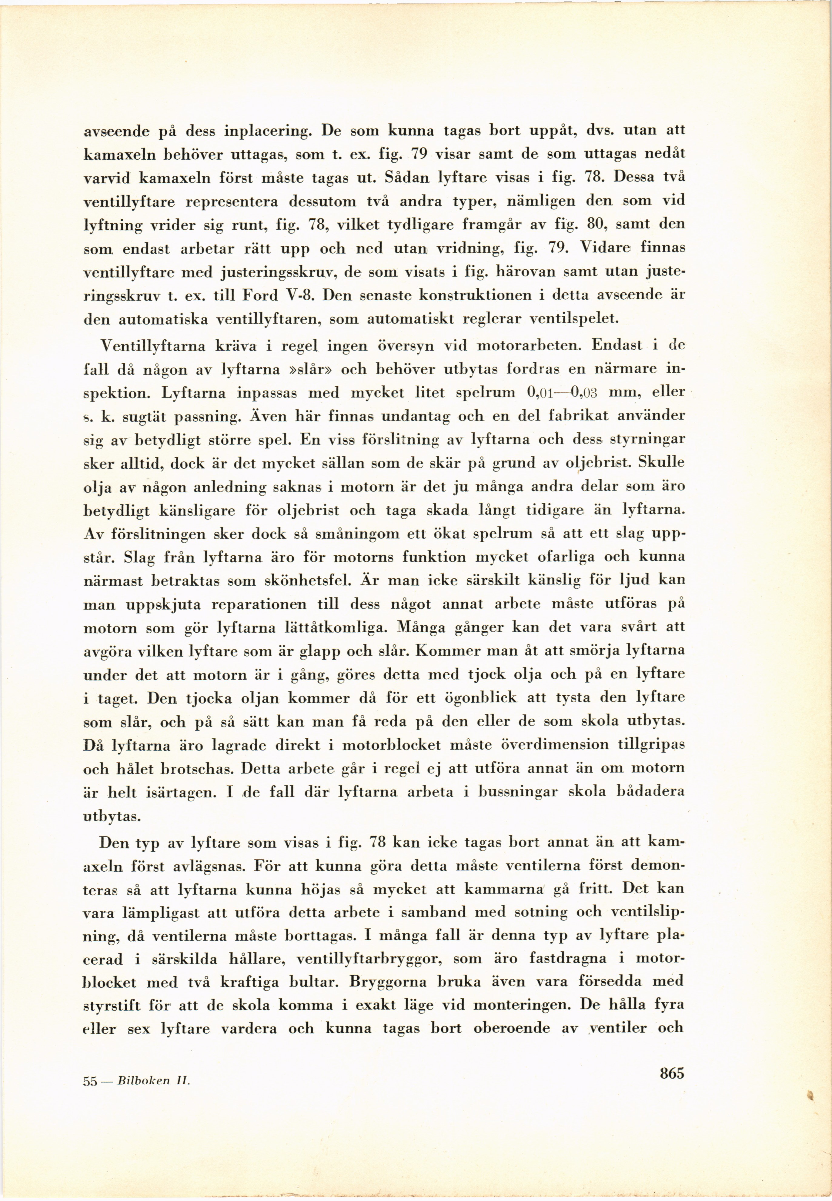 varvid kamaxeln först måste tagas ut. Sådan lyftare visas i fig. 78. Dessa två