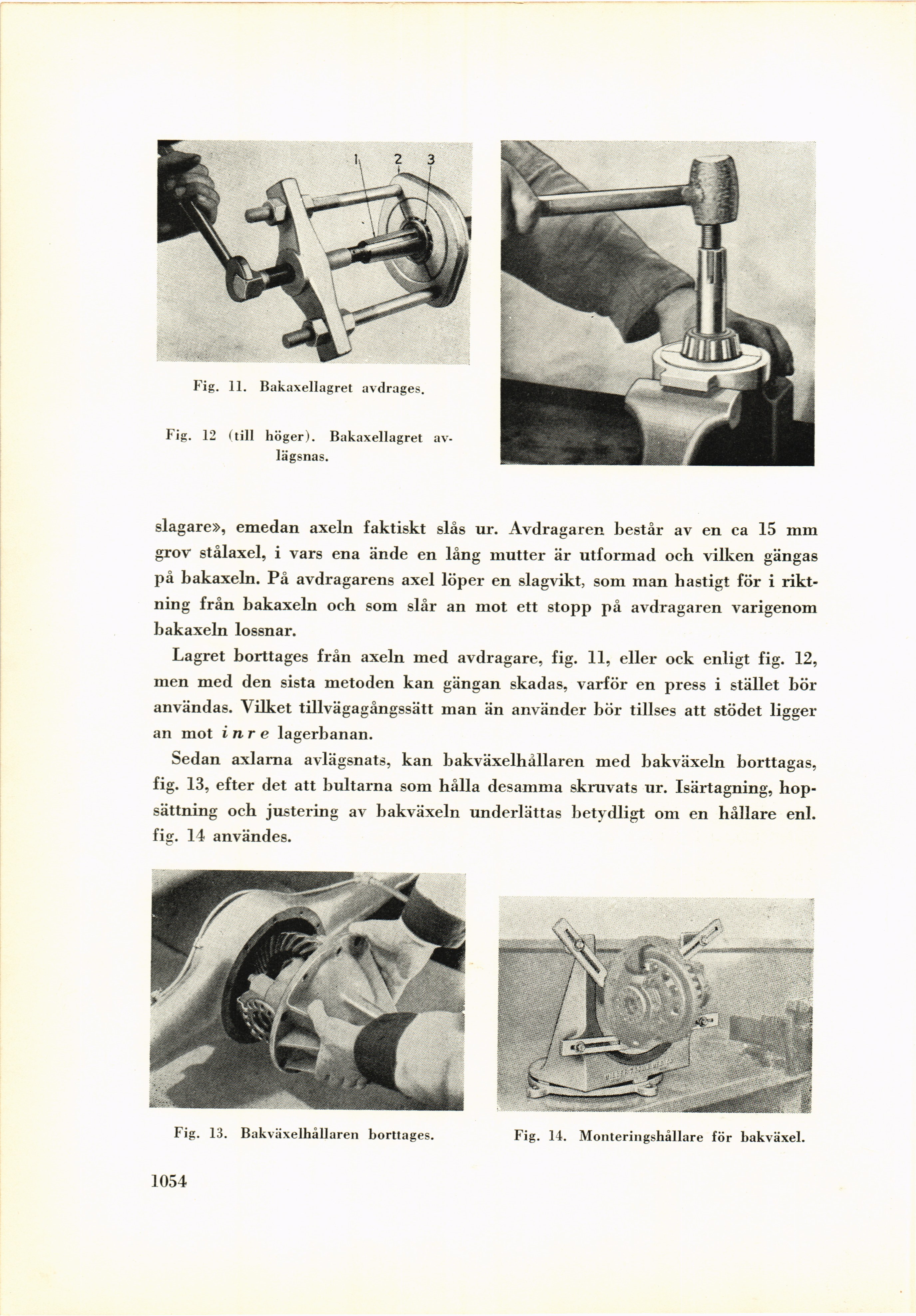 Fig. 13. Bakväxelhållaren borttages.	Fig. 14. Monteringshållare för bakväxel.