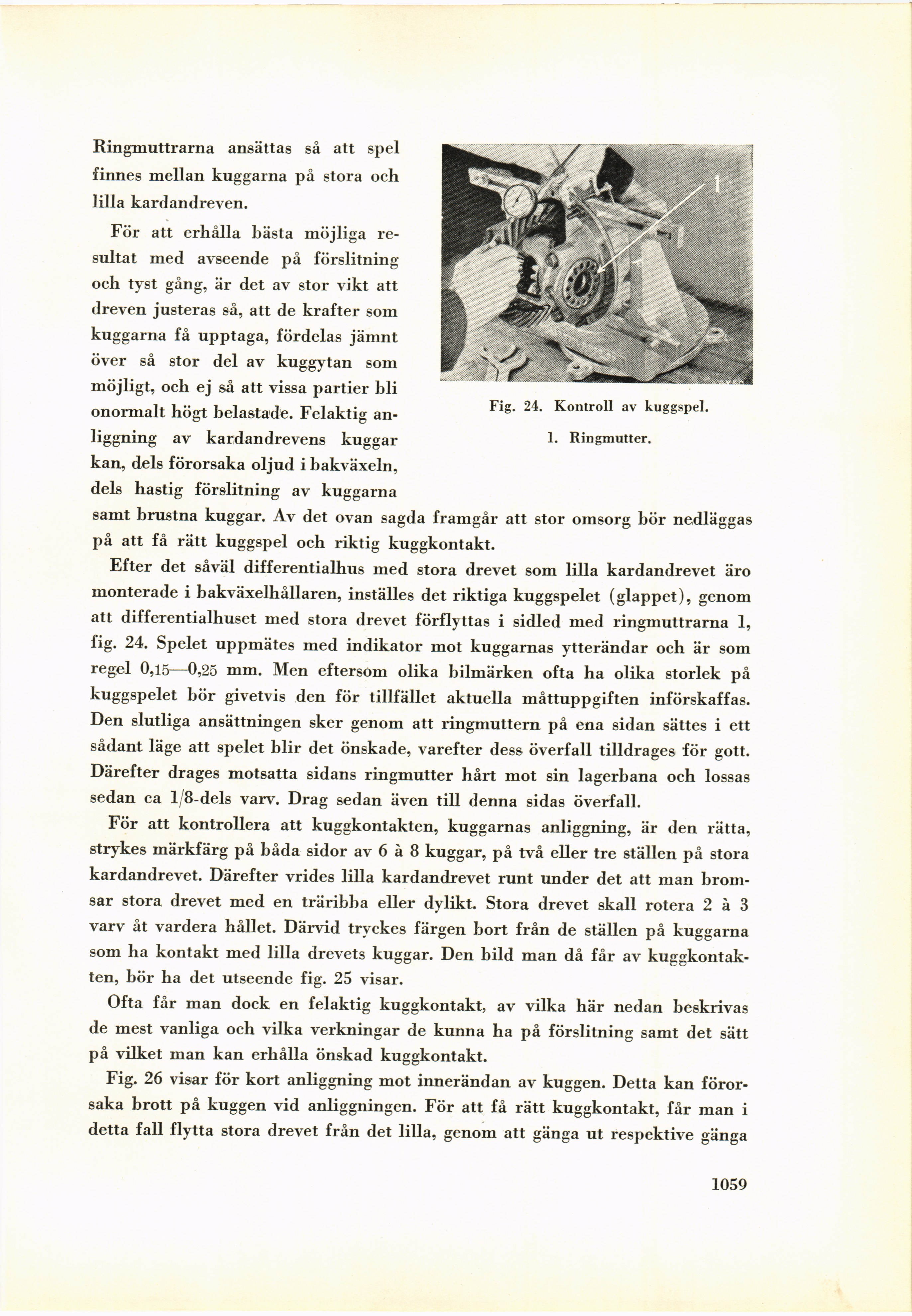 fig. 24. Spelet uppmätes med indikator mot kuggarnas ytterändar och är som