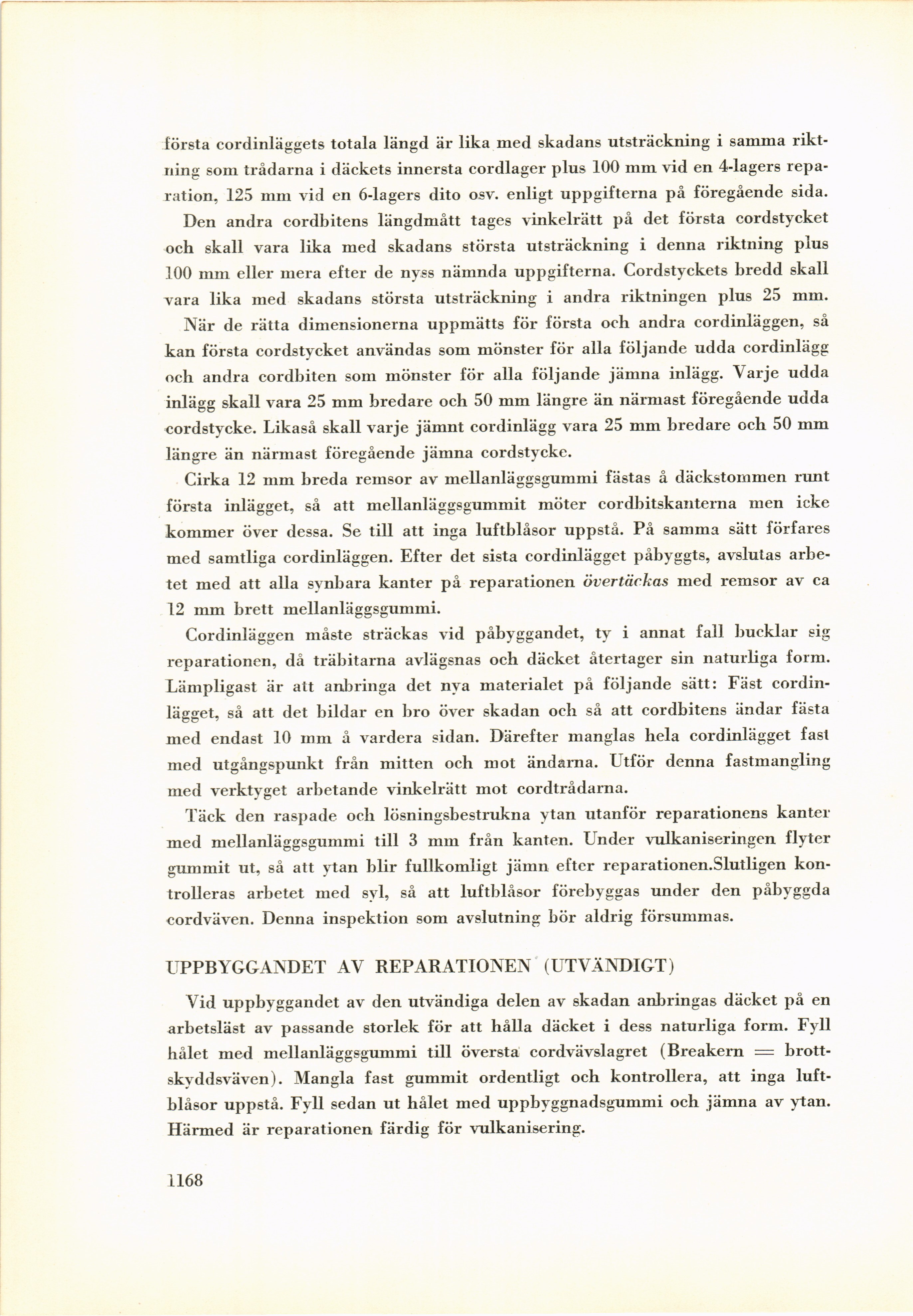 reparation, 125 mm vid en 6-lagers dito osv. enligt uppgifterna på föregående sida.