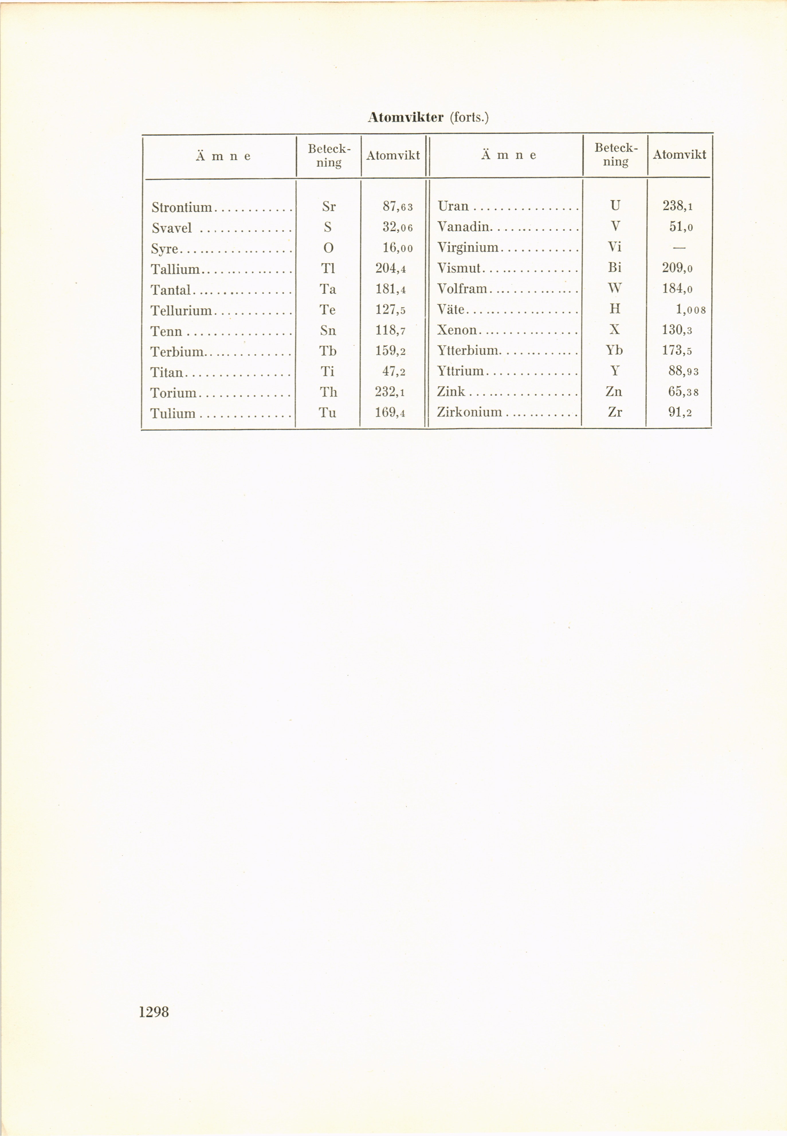 Ämne	[-Beteckning-]	{+Beteck- ning+}	Atomvikt