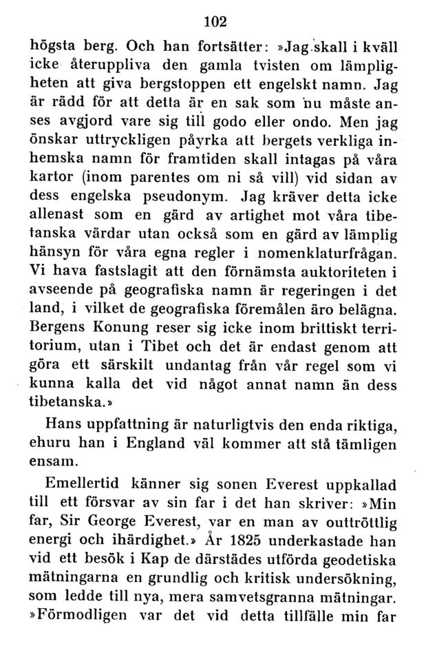 lämpligheten att giva bergstoppen ett engelskt namn. Jag