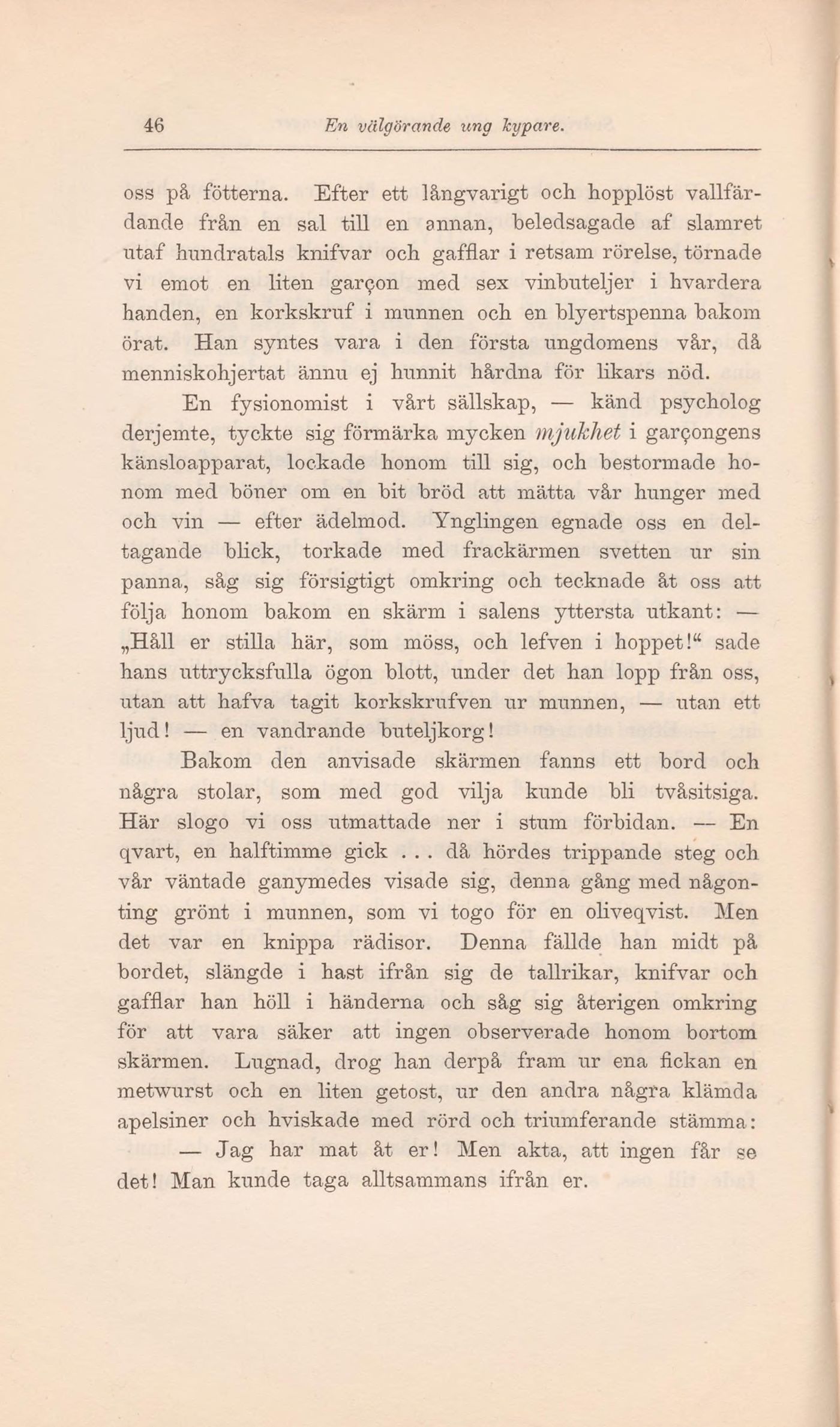 derjemte, tyckte sig förmärka mycken mjukhet i garçongens