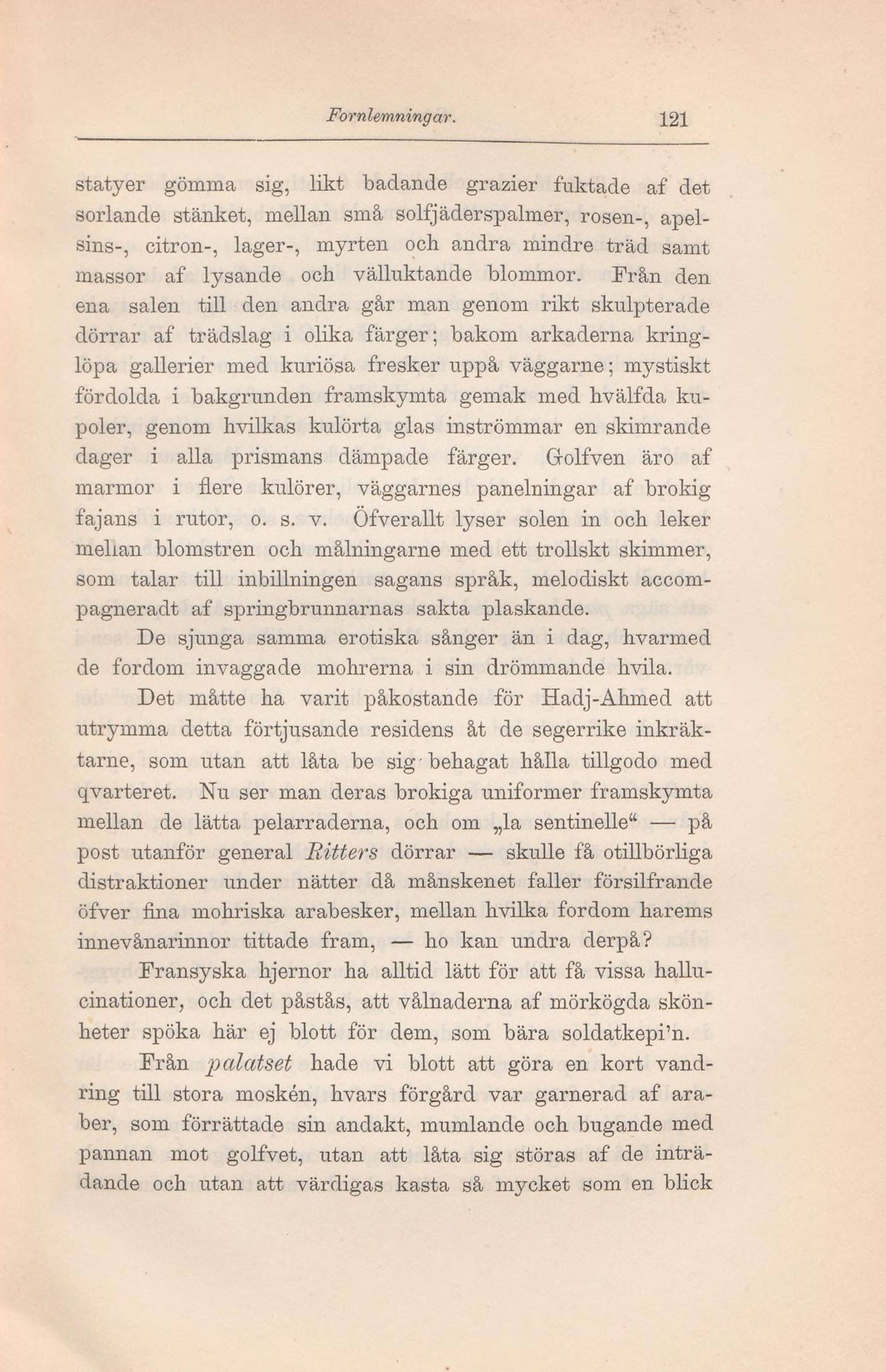 öfver fina mohriska arabesker, mellan hvilka fordom harems