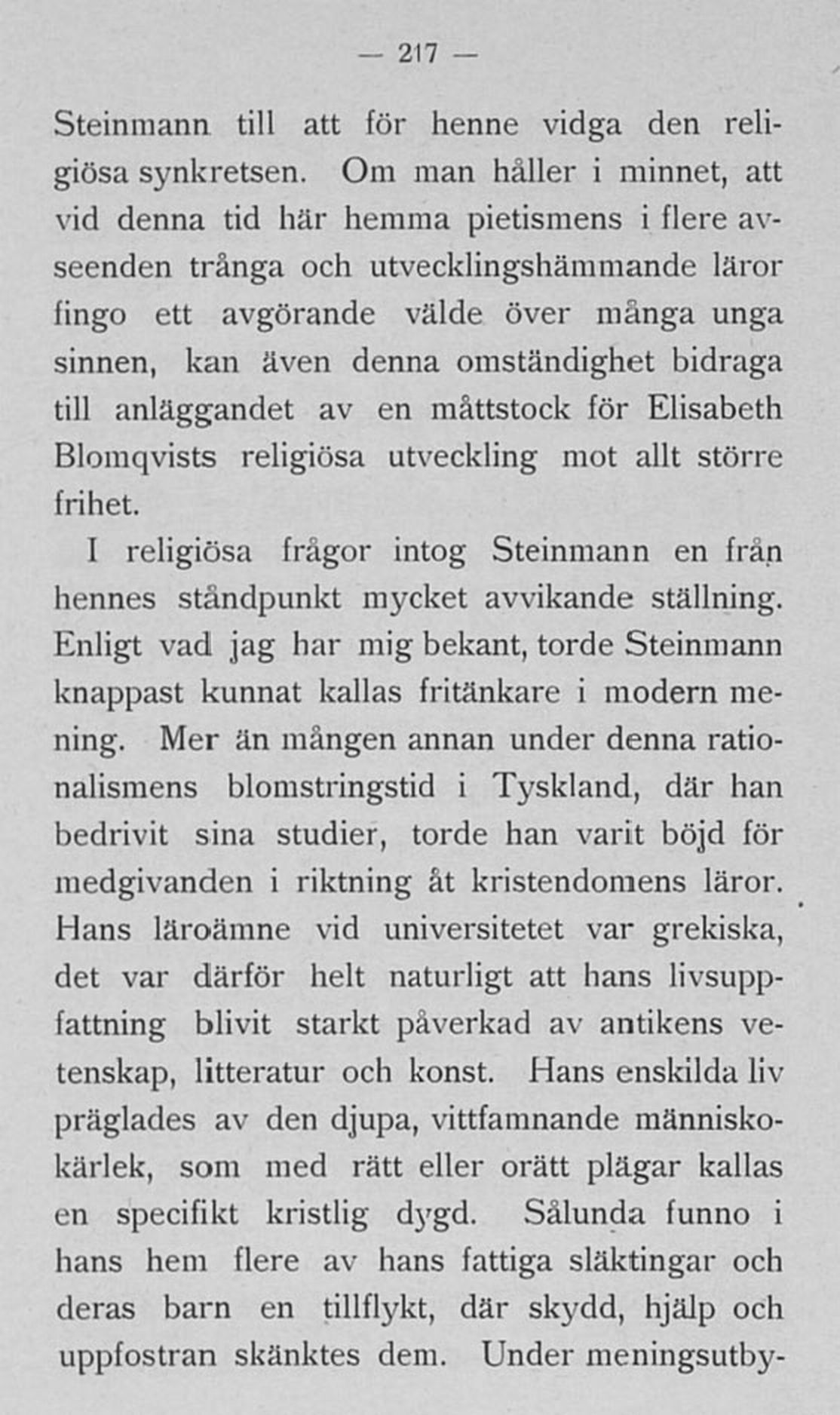 1 religiösa frågor intog Steinmann en frän