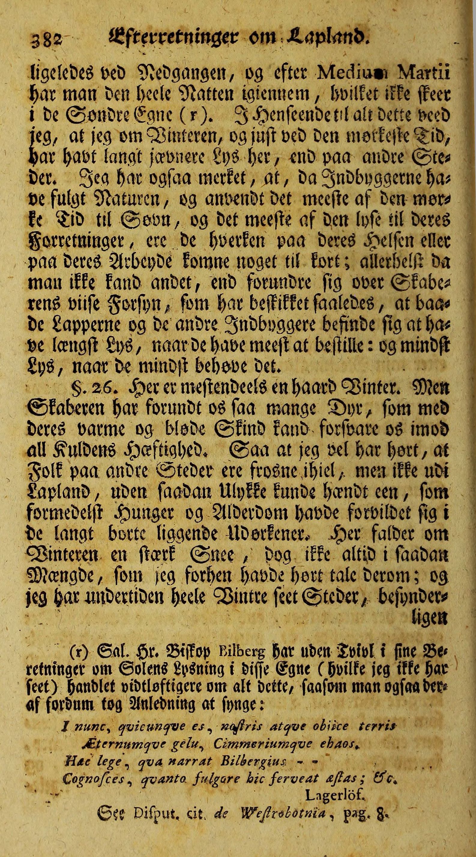 Full resolution (JPEG) - On this page / på denna sida - Beskrivelse over de under Sverriges Krone liggende Lapmarker - 1. Om Landets Situation og Beskaffenhed i Almindelighed - § 25. Den mørke Vinter-Tid - § 26. En haard Vinter