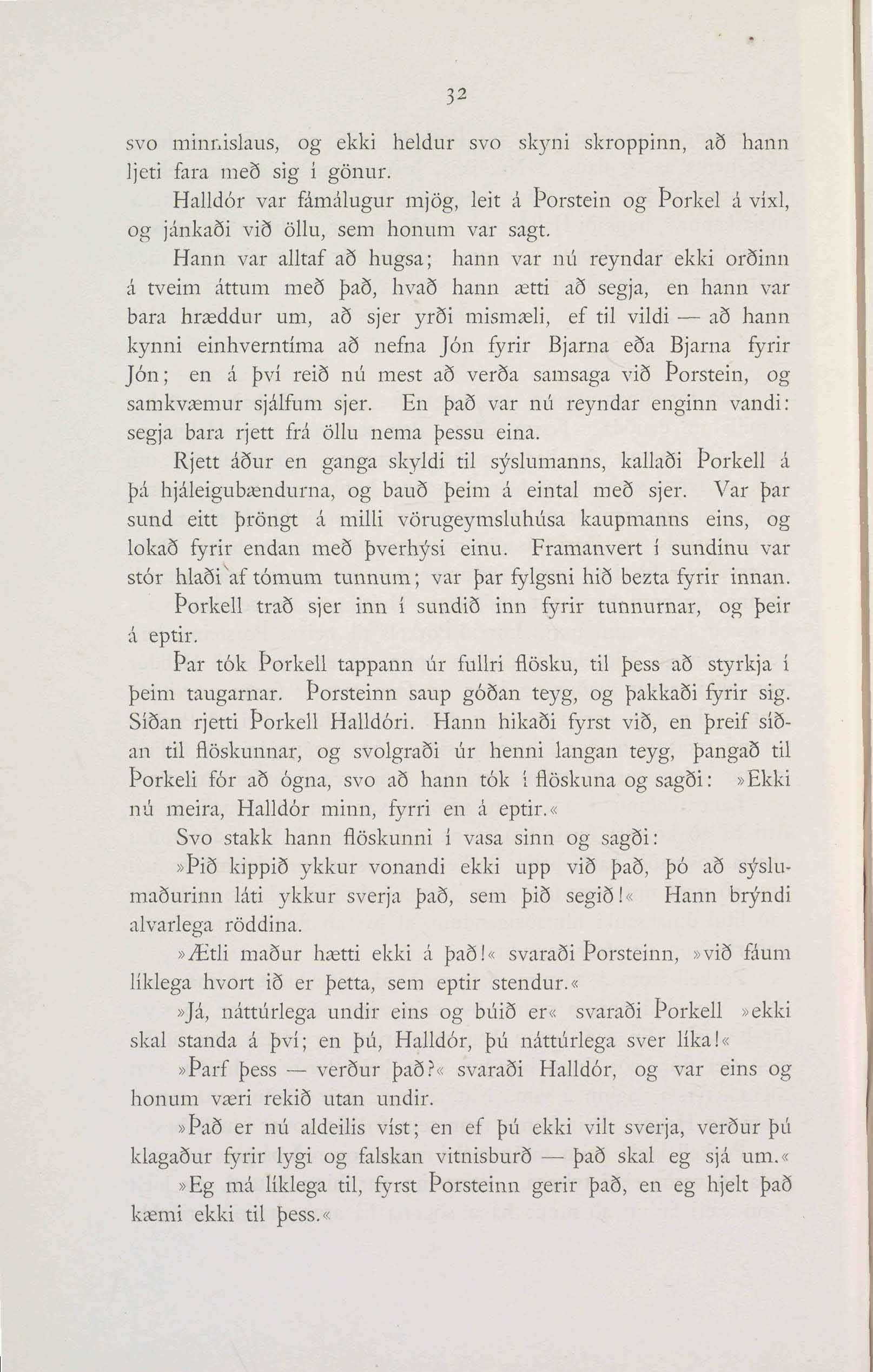 Halldór var fámálugur mjög, leit á Þorstein og Þorkel á víxl,