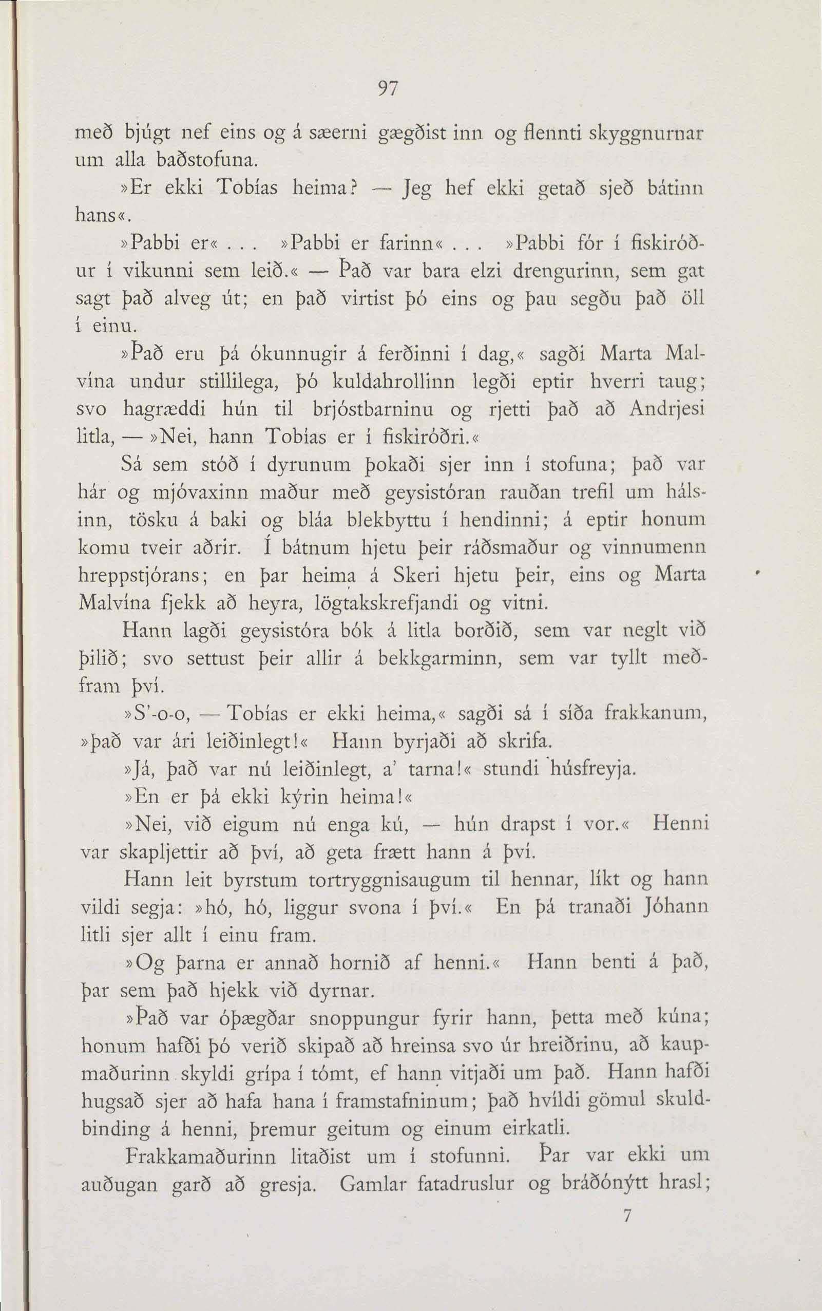 litla, — »Nei, hann Tobías er i fiskiróðri.«