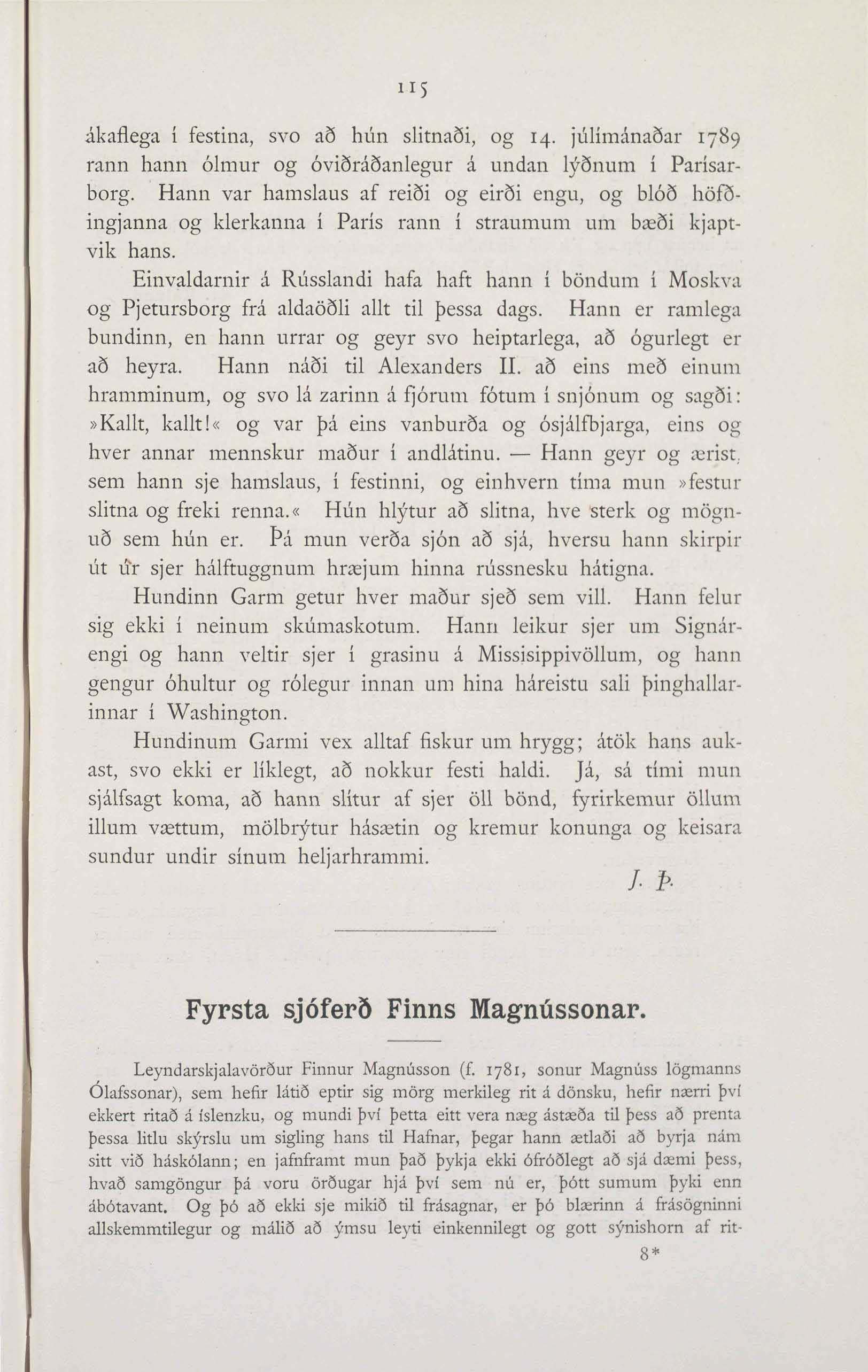 þessa litlu skýrslu um sigling hans til Hafnar, þegar hann ætlaði að byrja nám