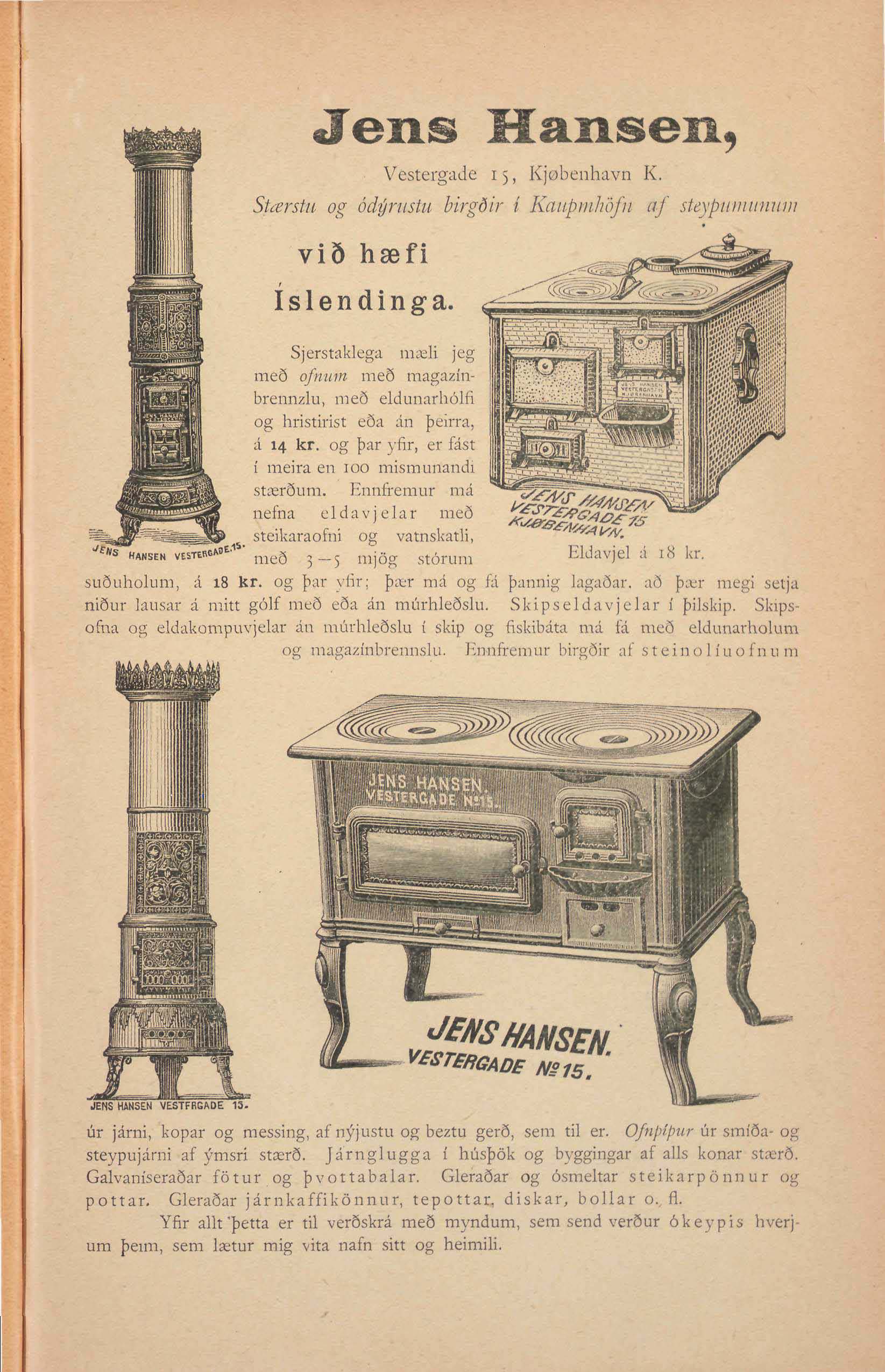 úr járni, kopar og messing, af nýjustu og beztu gerð, sem til er. Ofnpípur úr smíða- og