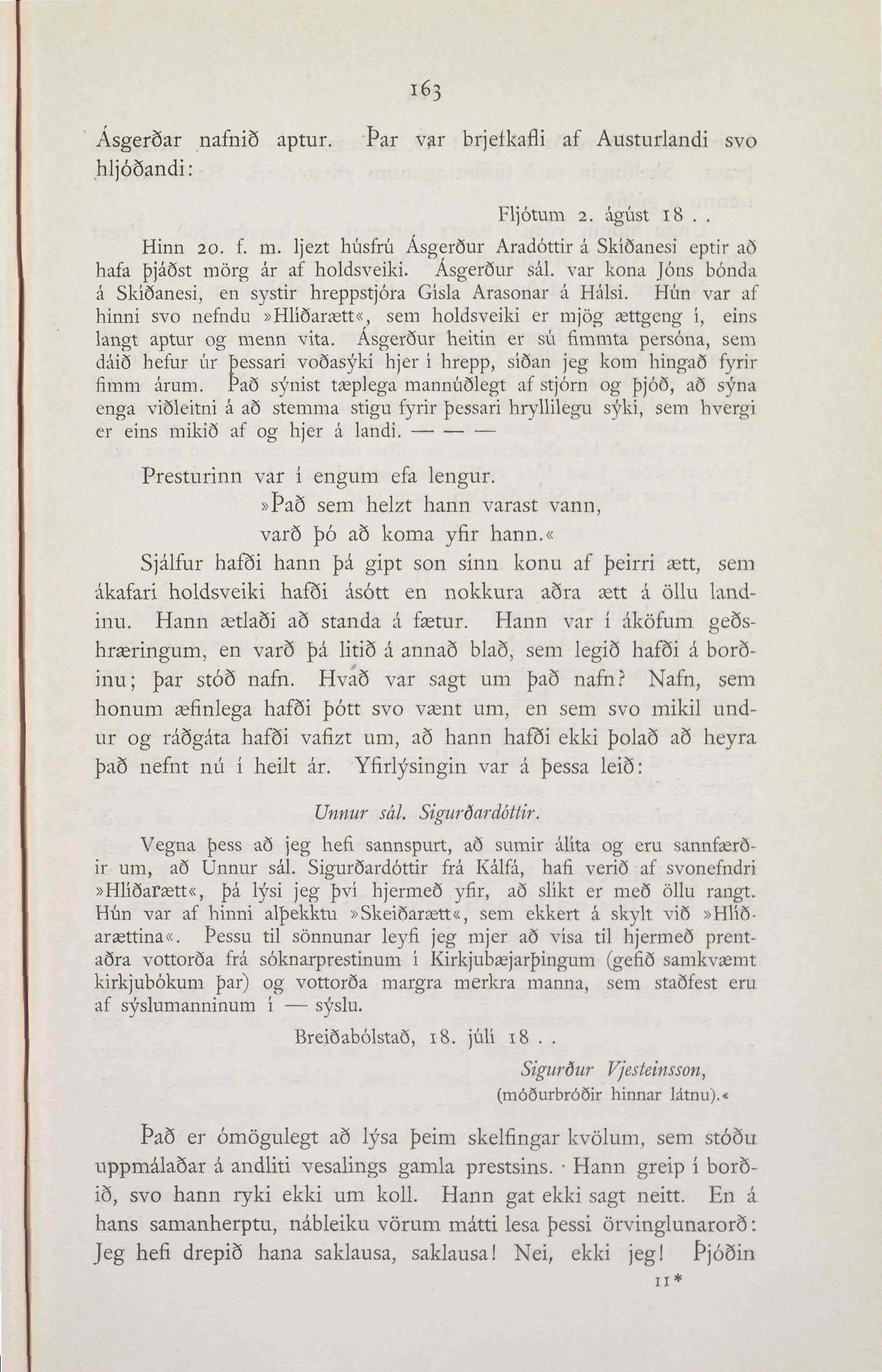 Asgerðar nafnið aptur. Þar var brjeíkafli af Austurlandi svo