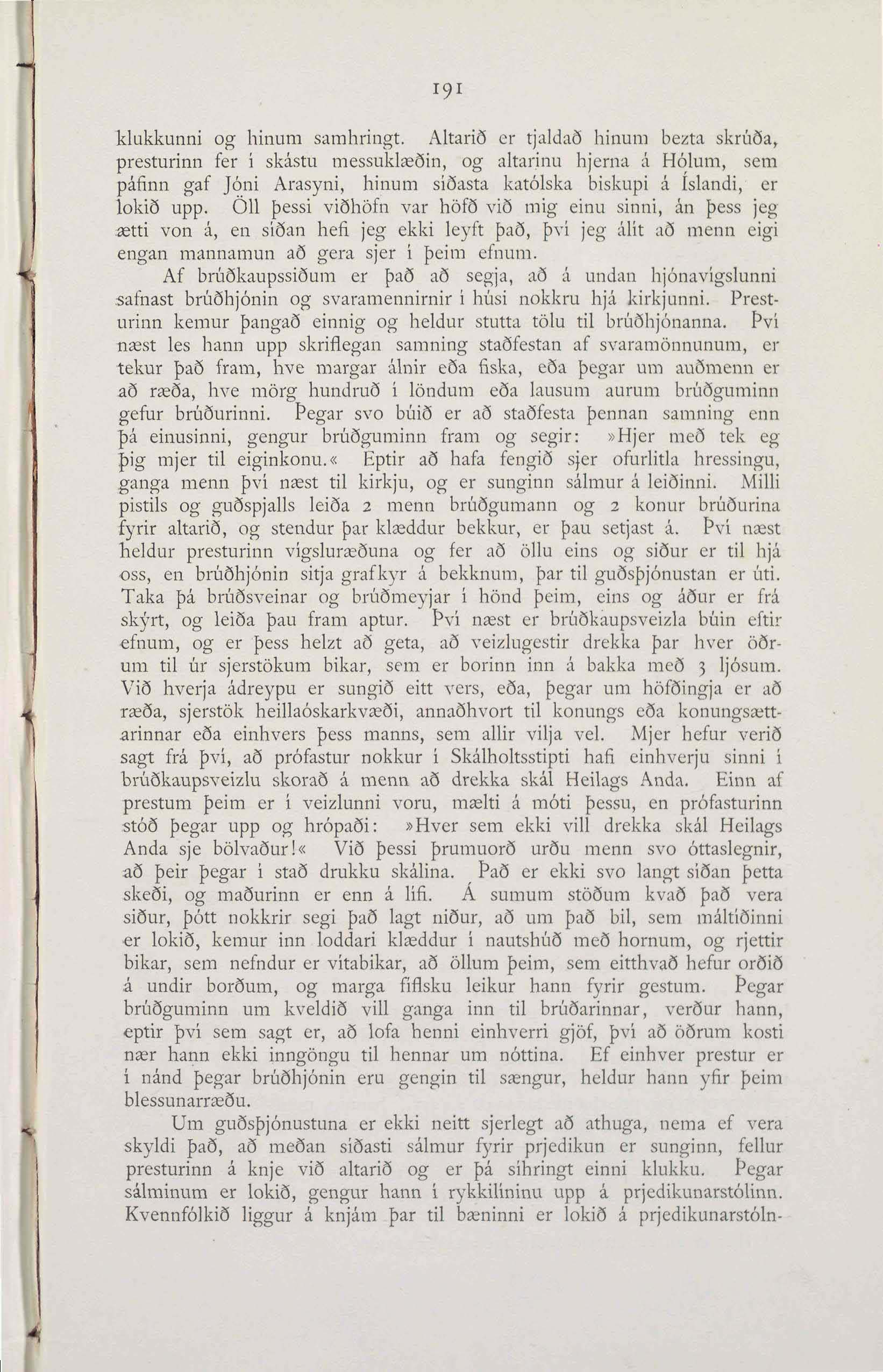 presturinn fer i skástu messuklæðin, og altar.inu hjerna á Hólum, sem