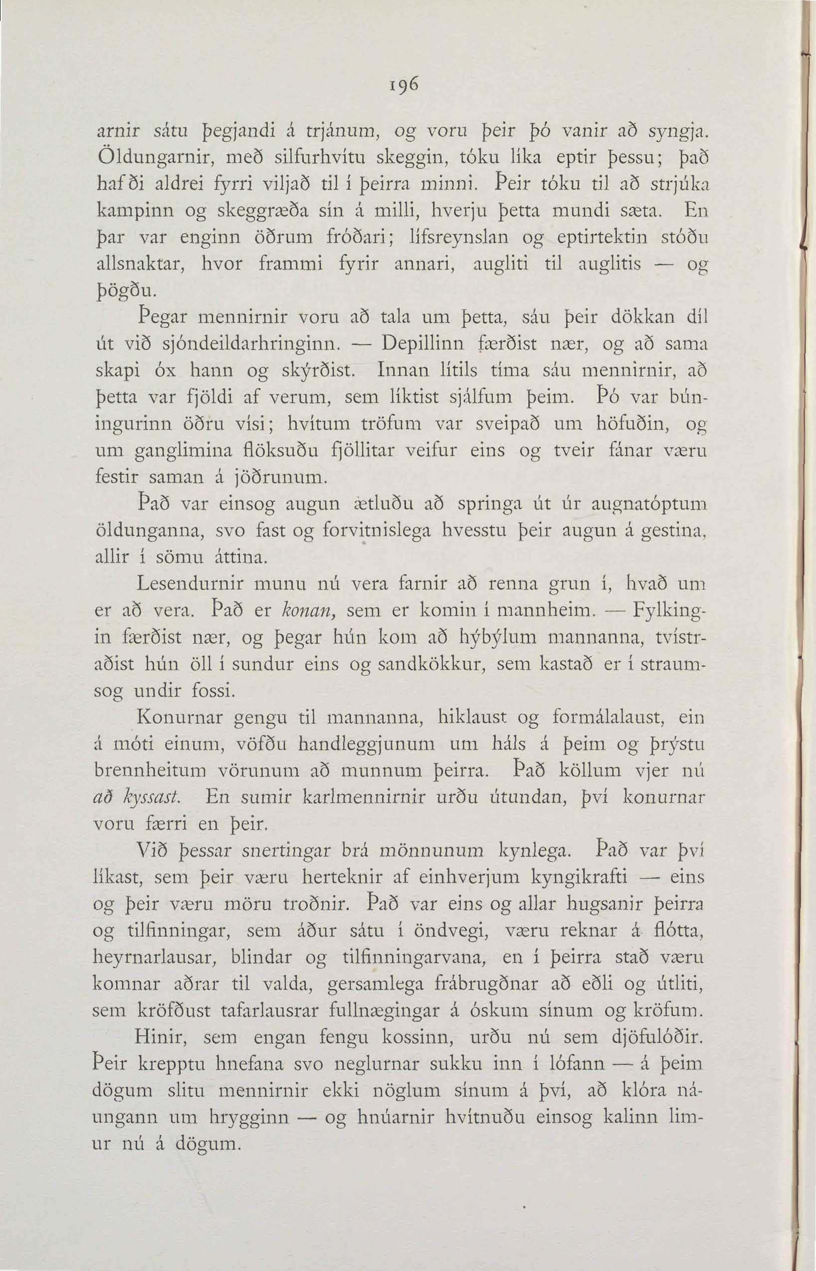 öldunganna, svo fast og forvitnislega hvesstu þeir augun á gestina,