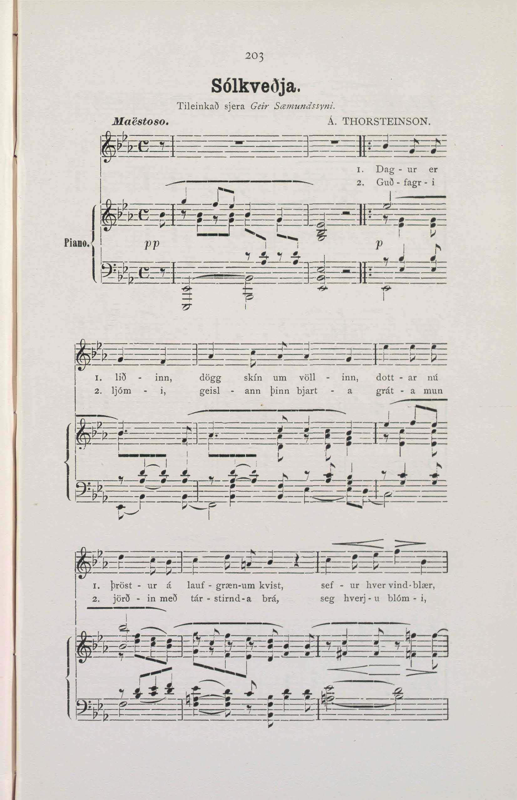 1. þröst - ur á lauf - græn-um kvist, sef - ur hver vind-blær,