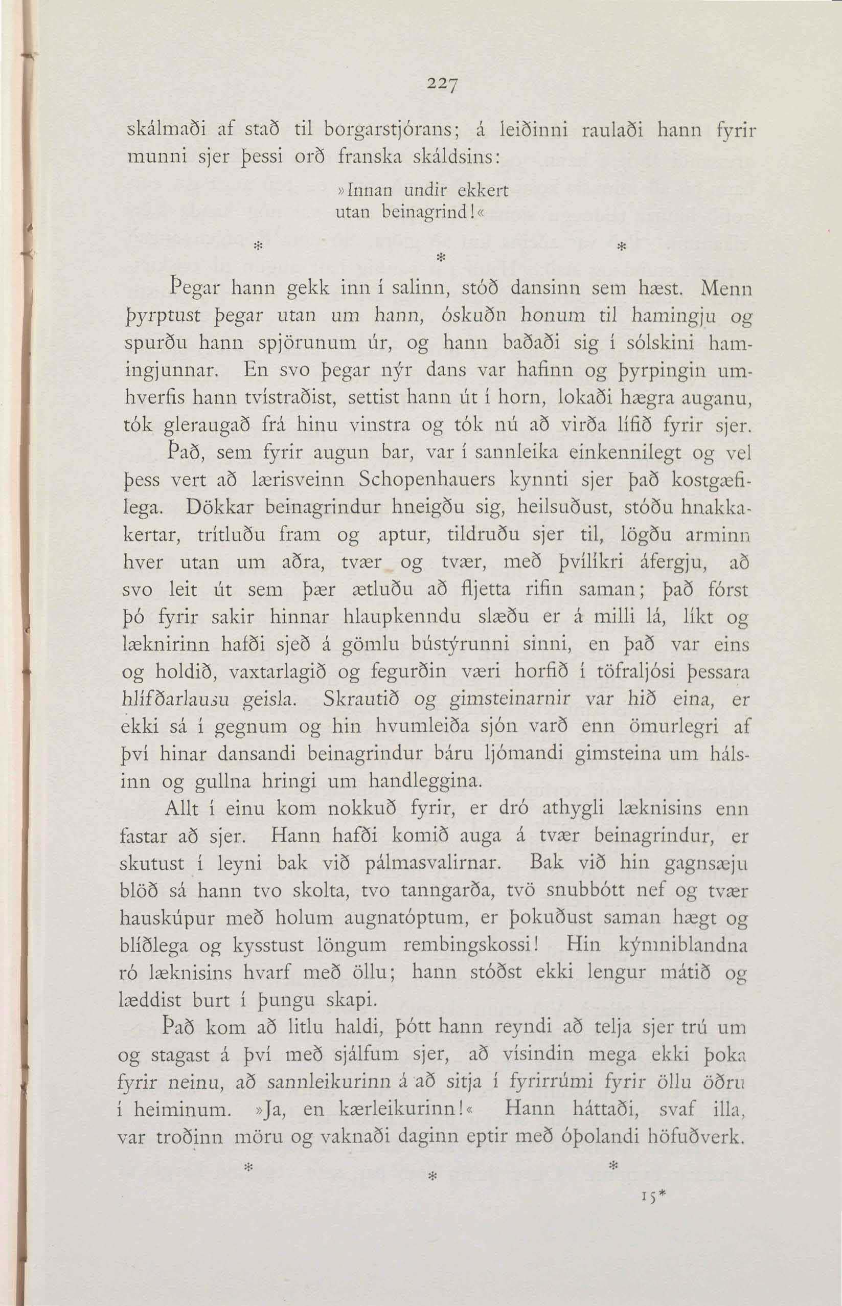 læknirinn hafði sjeð á gömlu bústýrunni sinni, en það var eins