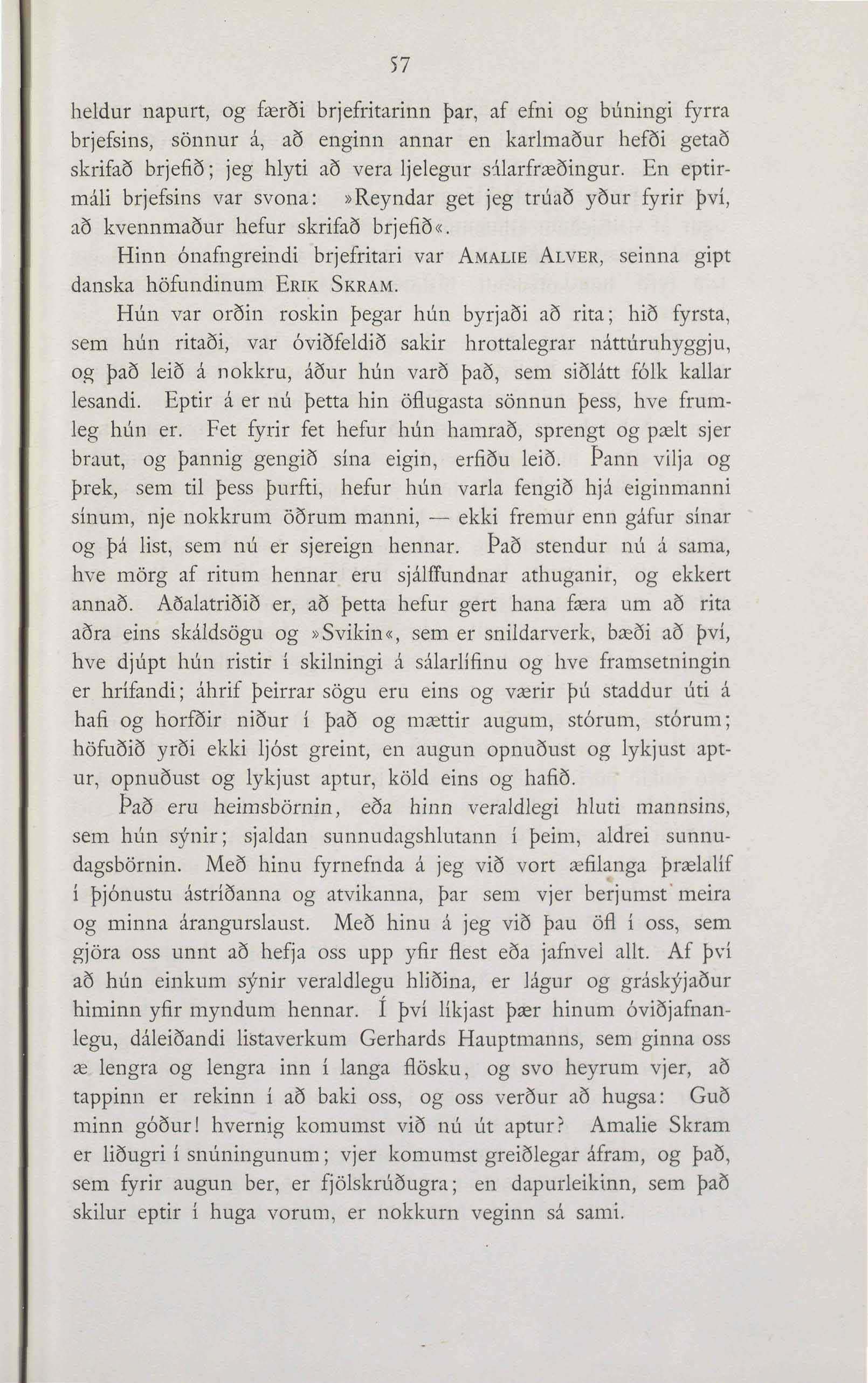 Hinn ónafngreindi brjefritari var Amalie Alver, seinna gipt