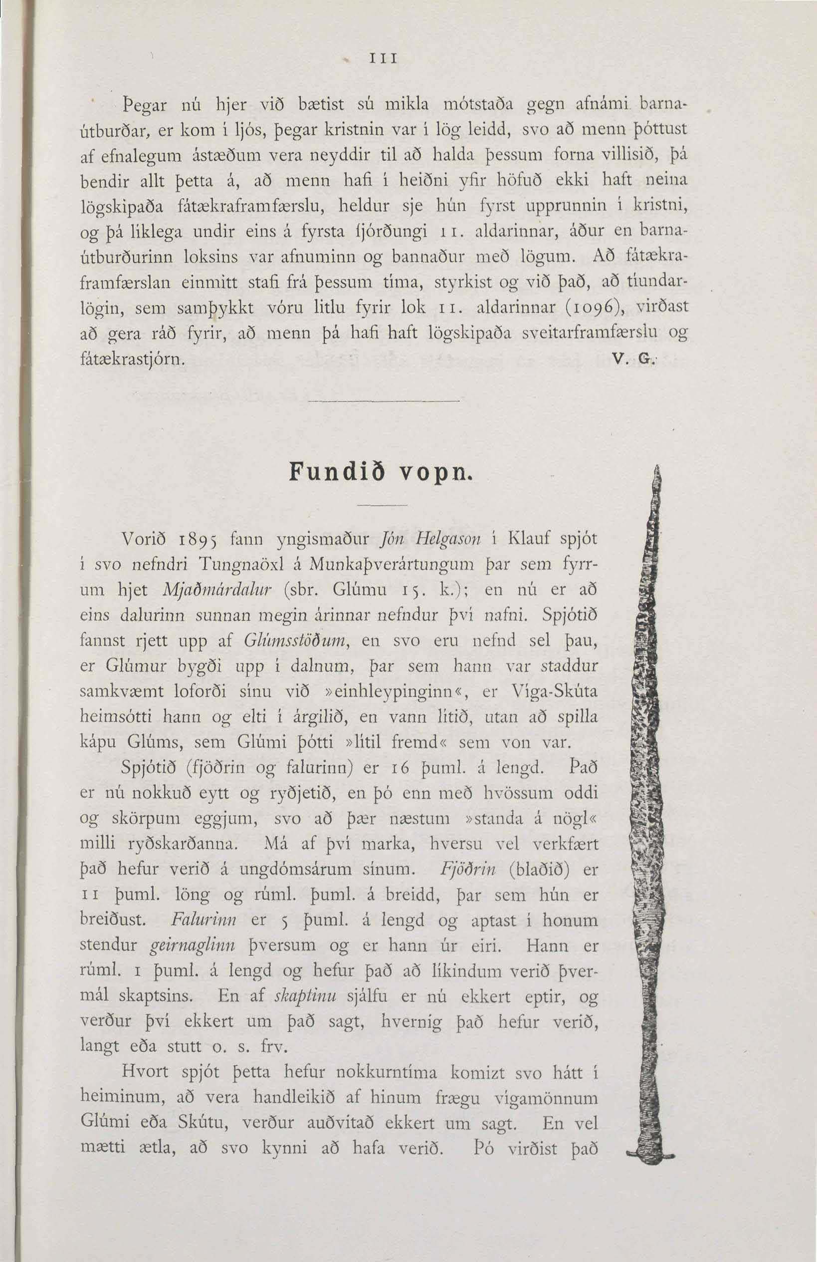 Voriö 1895 fann yngismaöur Jcn Helgason í Klauf spjót