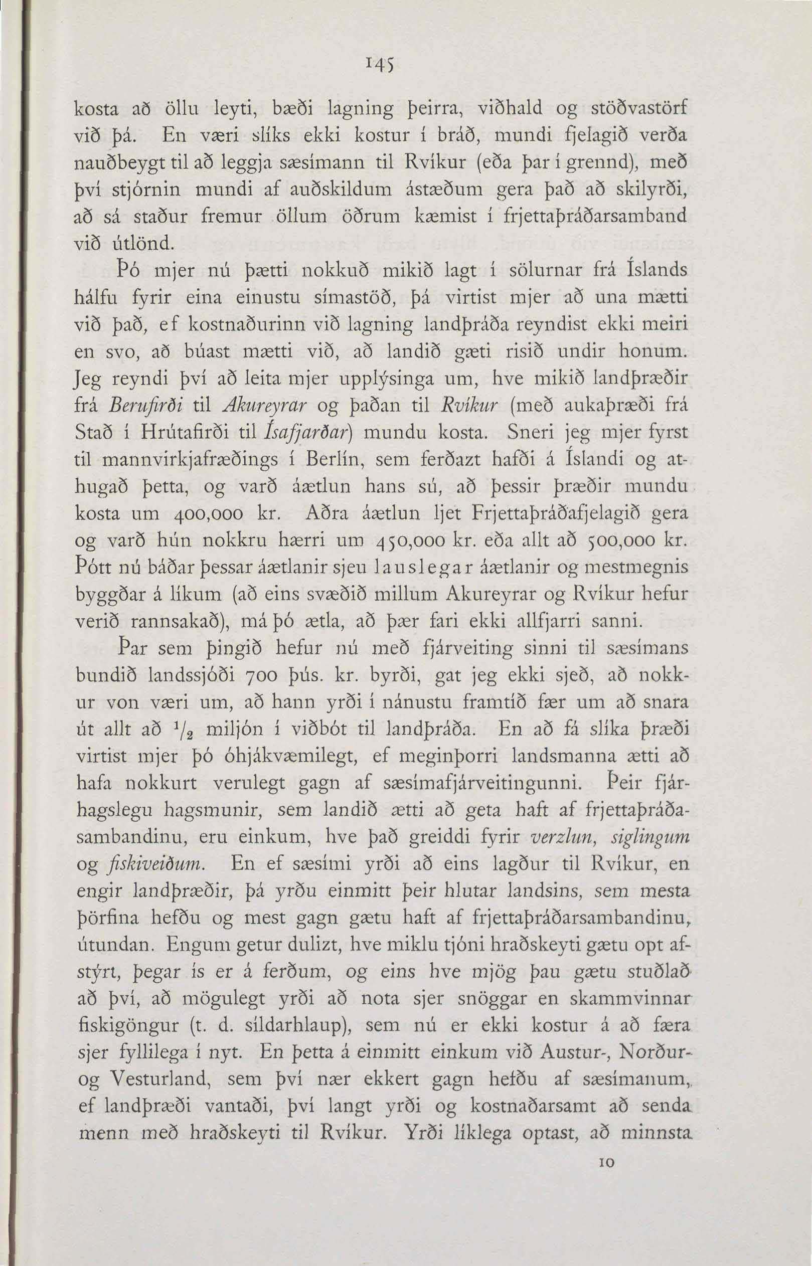 kosta um 400,000 kr. Aðra áætlun ljet Frjettaþráðafjelagið gera