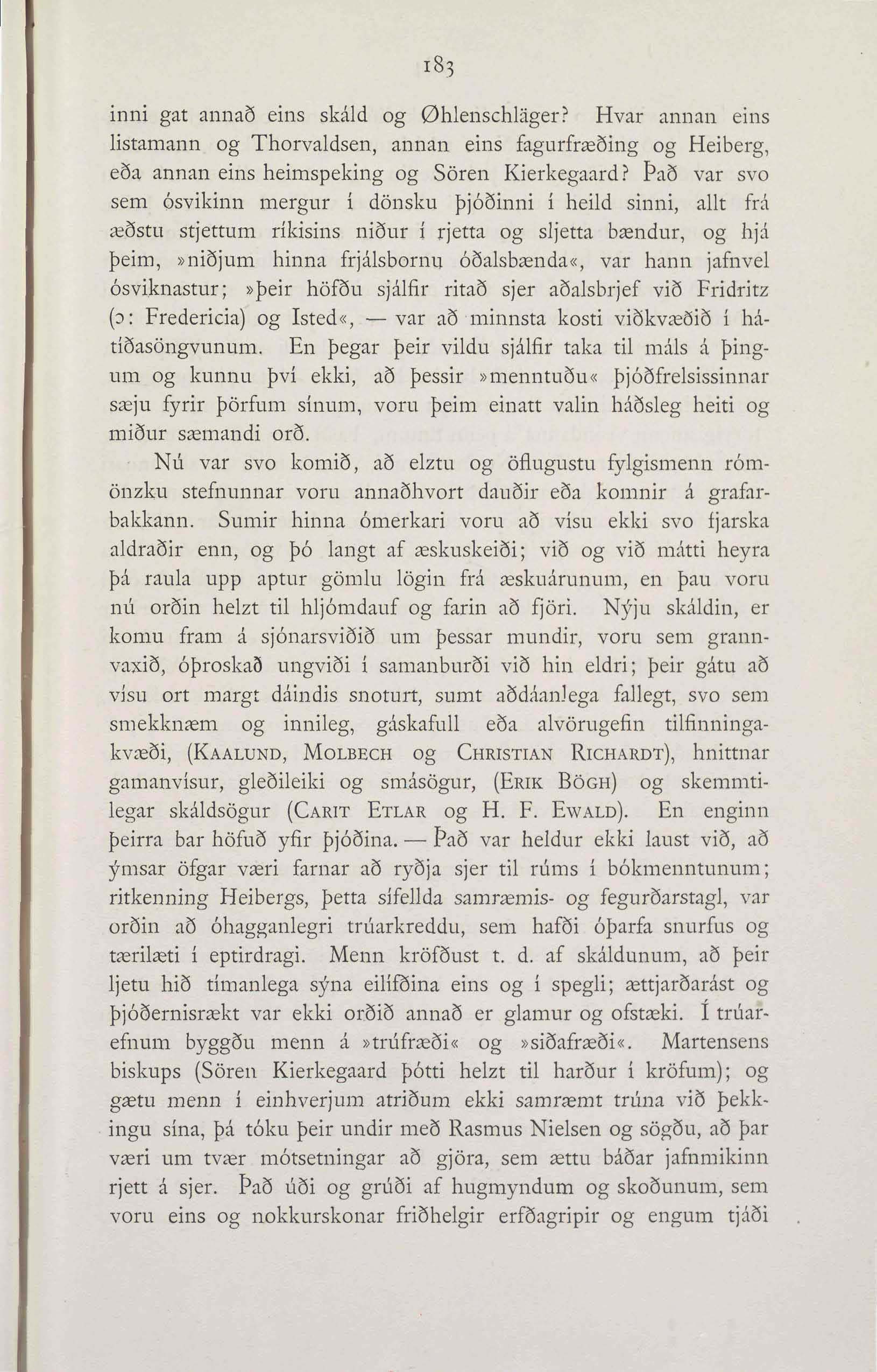 inni gat annað eins skald og Øhlenschläger? Hvar annan eins