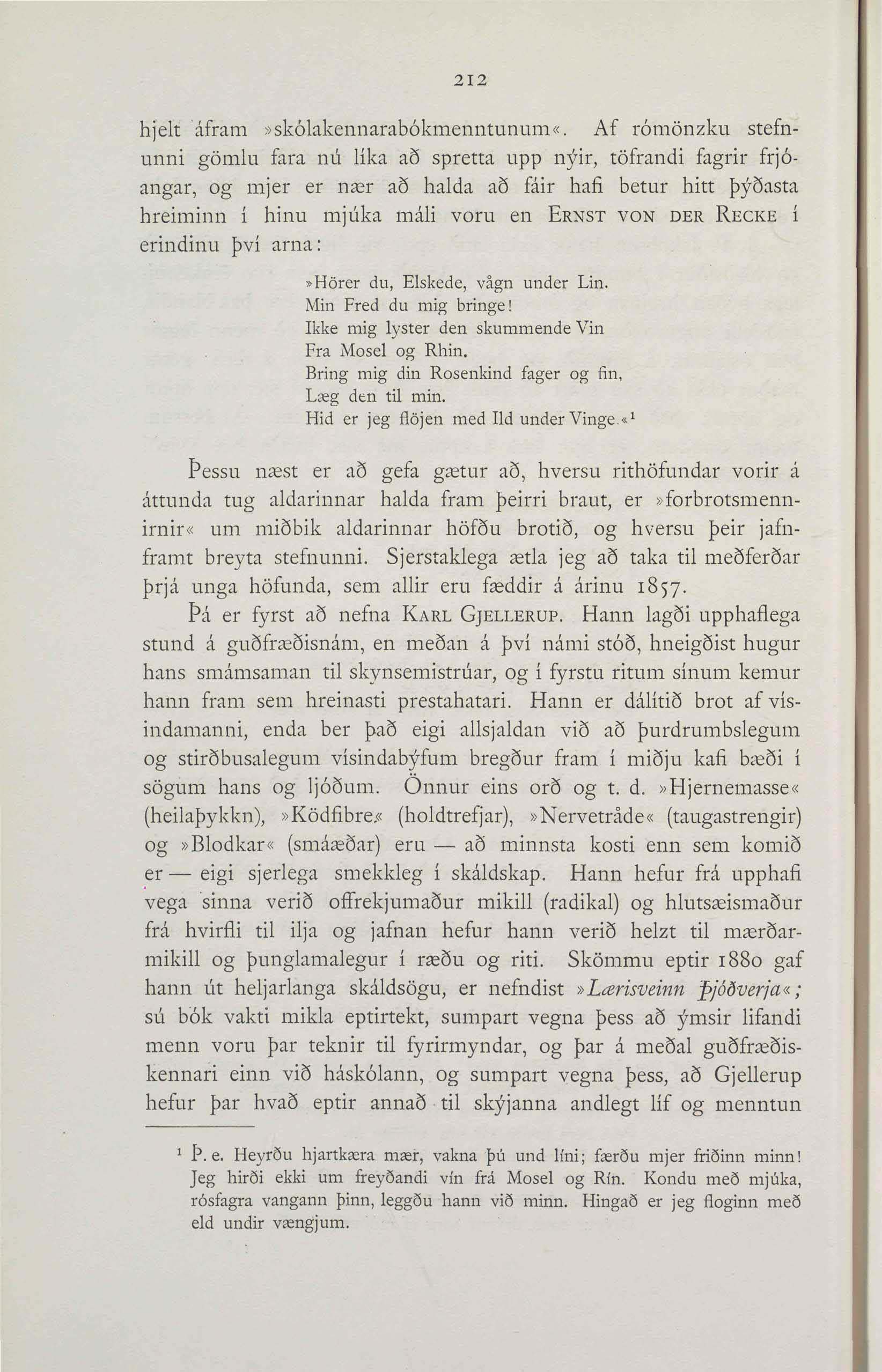 Þá er fyrst að nefna Karl Gjellerup. Hann lagði upphaflega