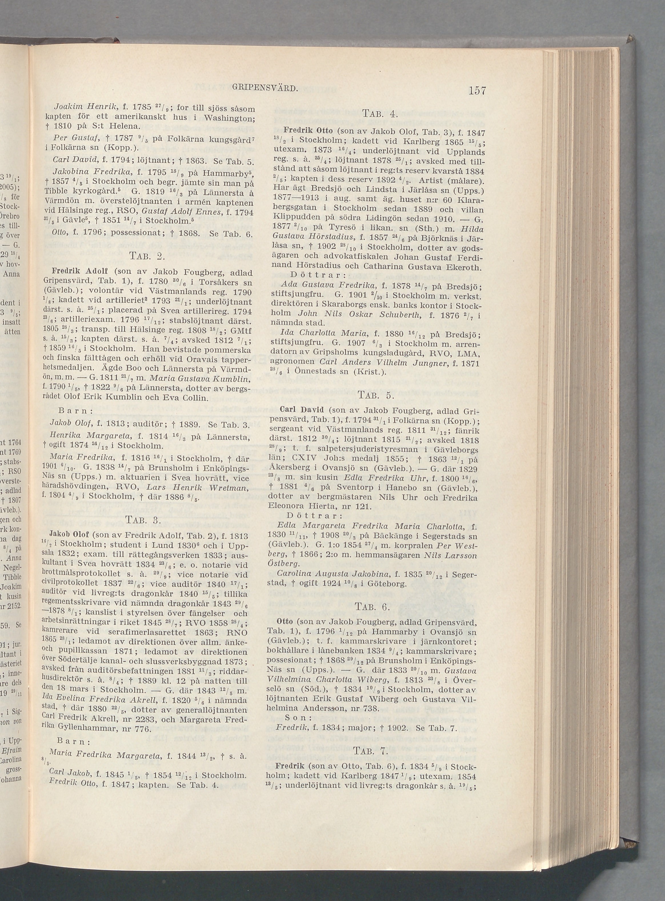 Fredrik, f. 1834; major; † 1902. Se Tab. 7.