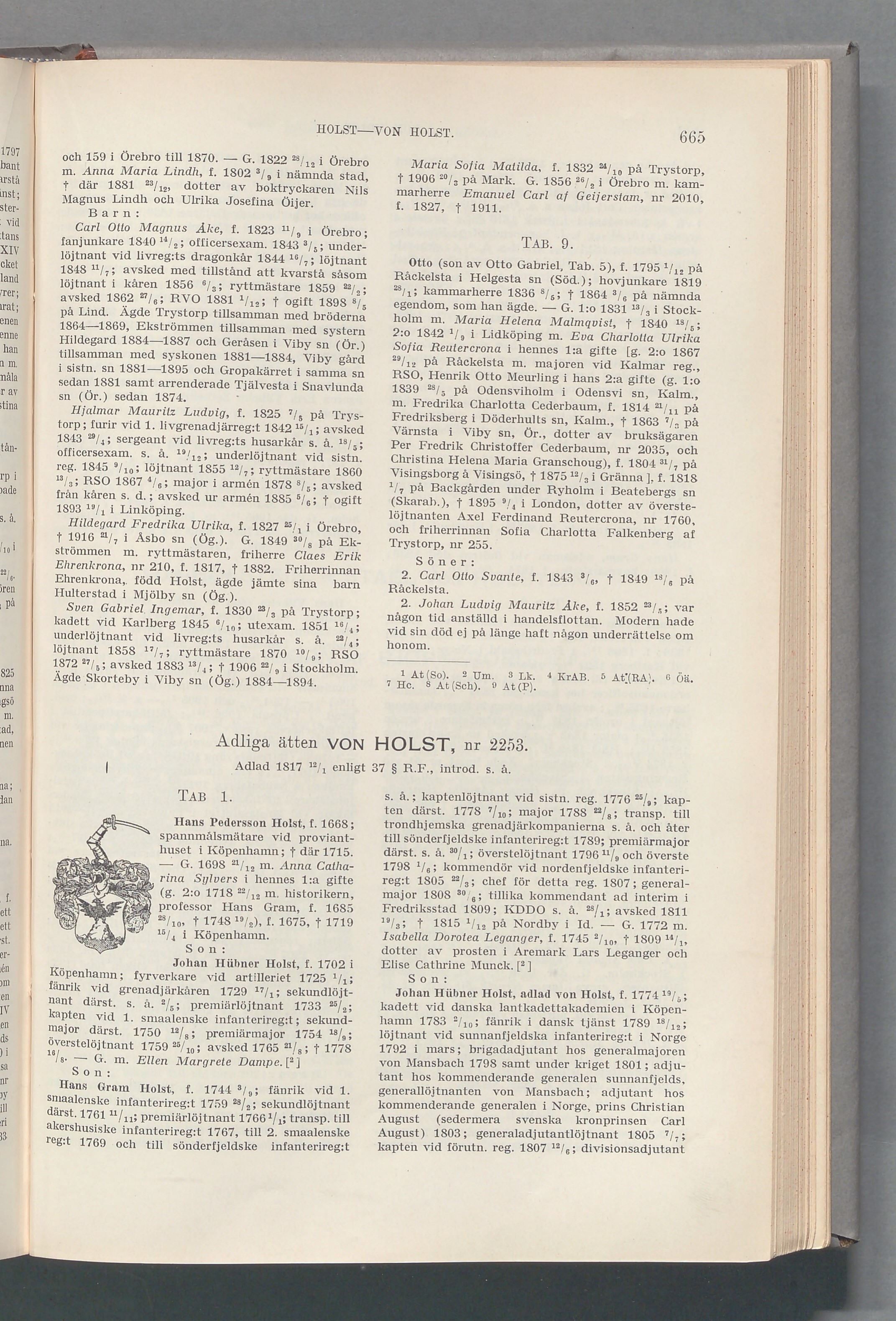Adliga ätten vVON HOLST, nr 2253.