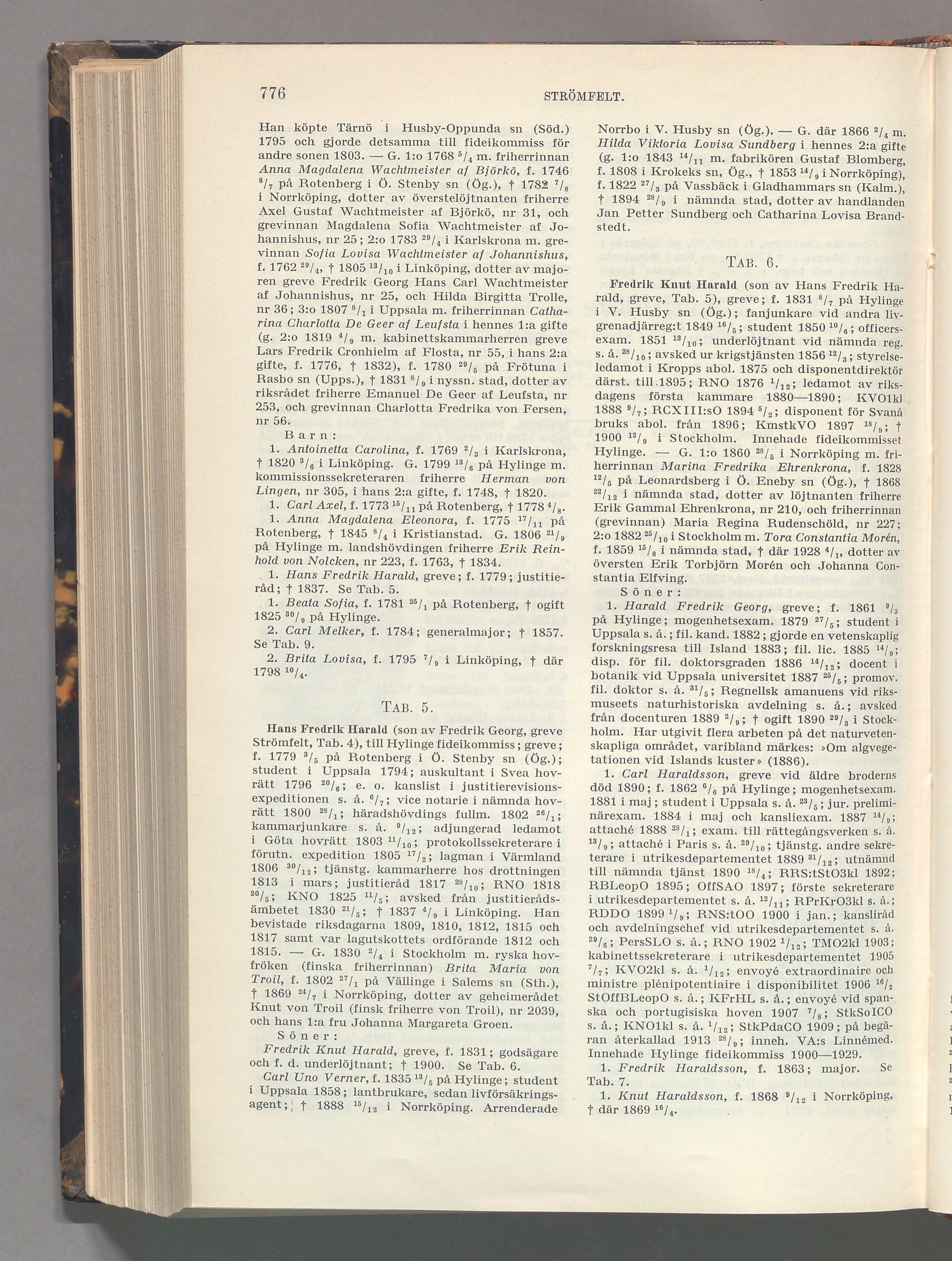 Harald, greve, Tab. 5), greve; f. 1831 8/7 på Hylinge
