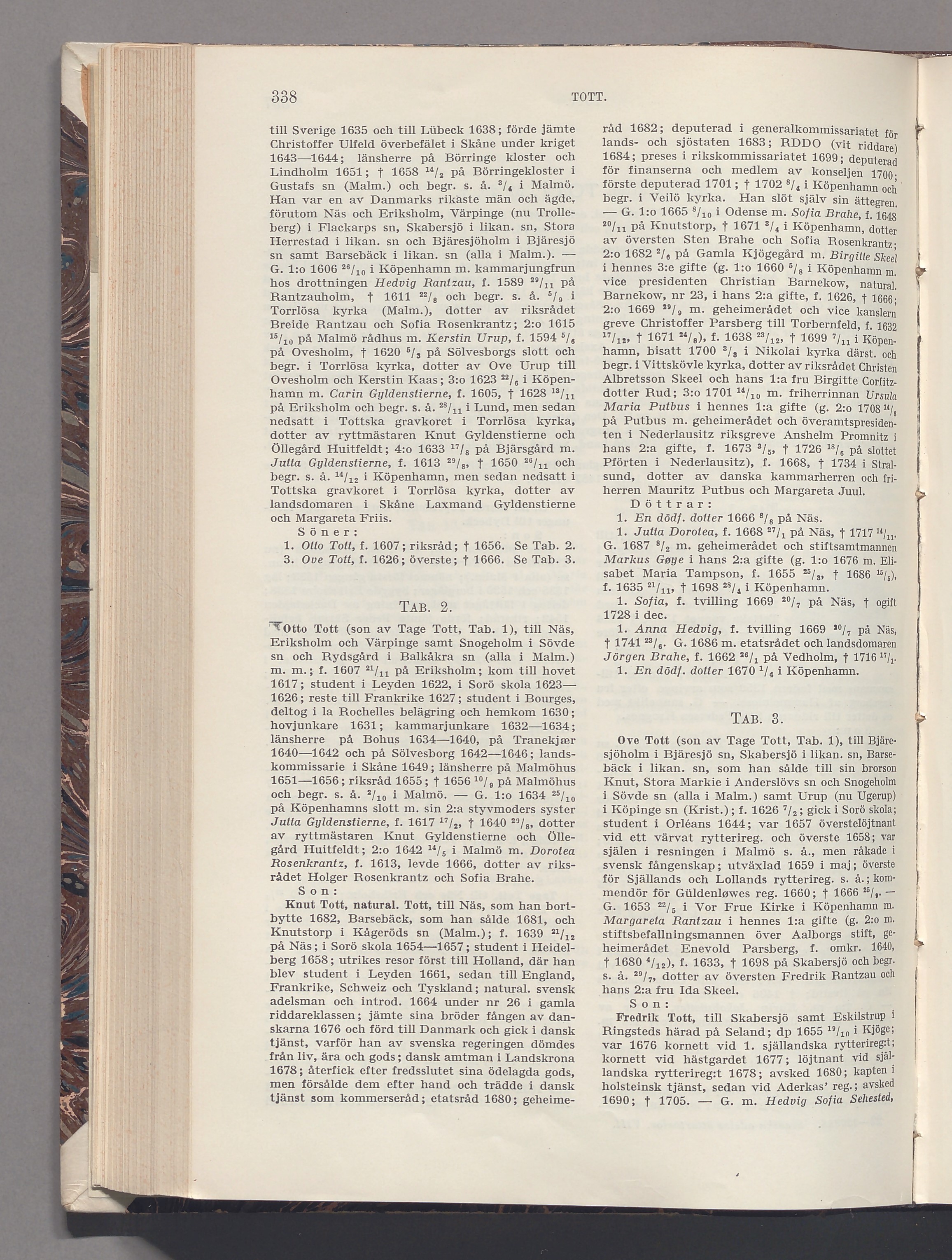 1. Otto Tott, f. 1607; riksråd; † 1656. Se Tab. 2.