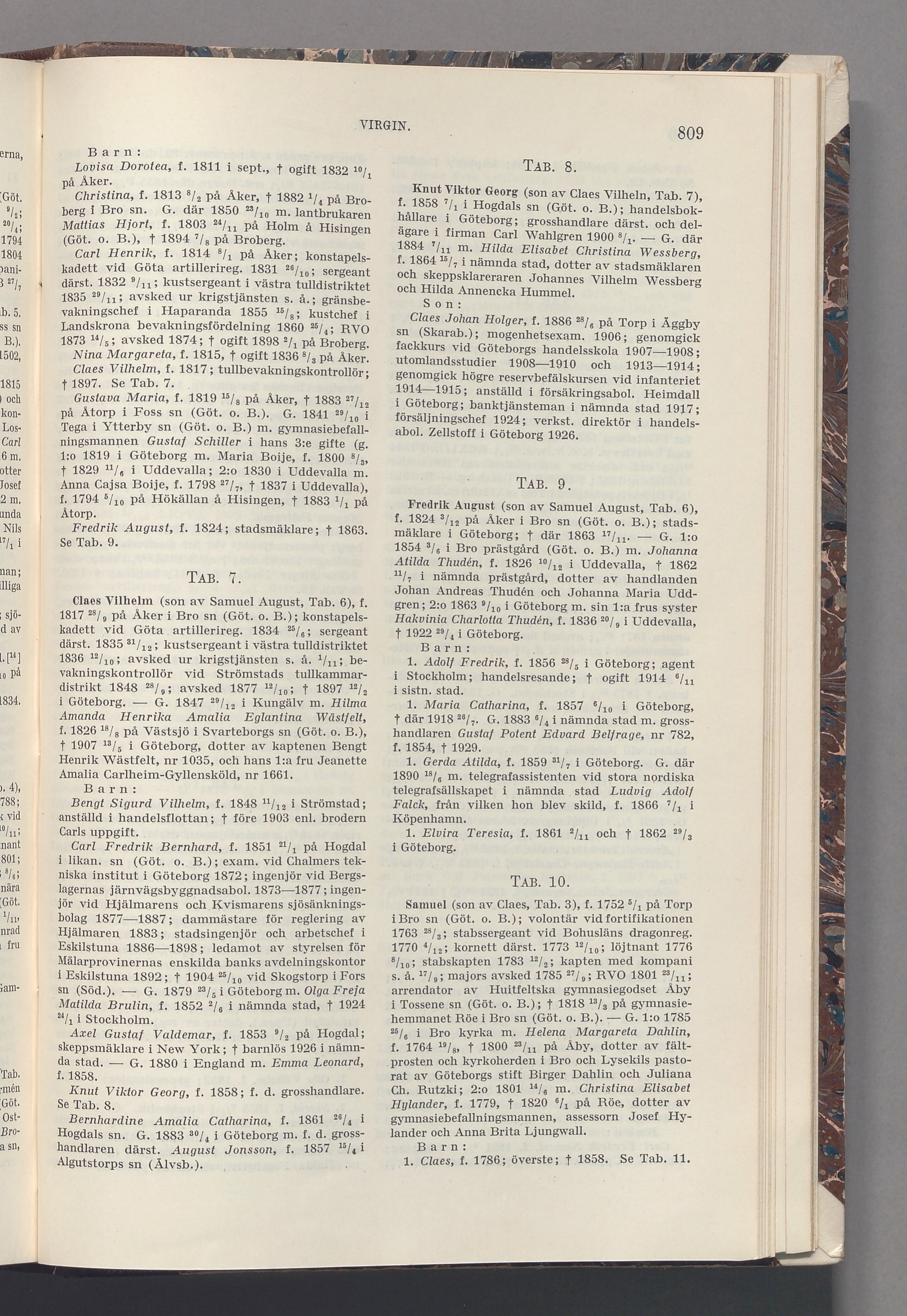 1. Claes, f. 1786; överste; † 1858. Se Tab. 11.