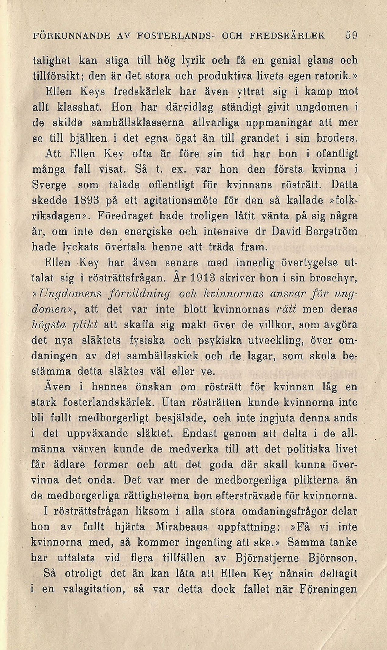 Ellen Keys fredskärlek har även yttrat sig i kamp mot