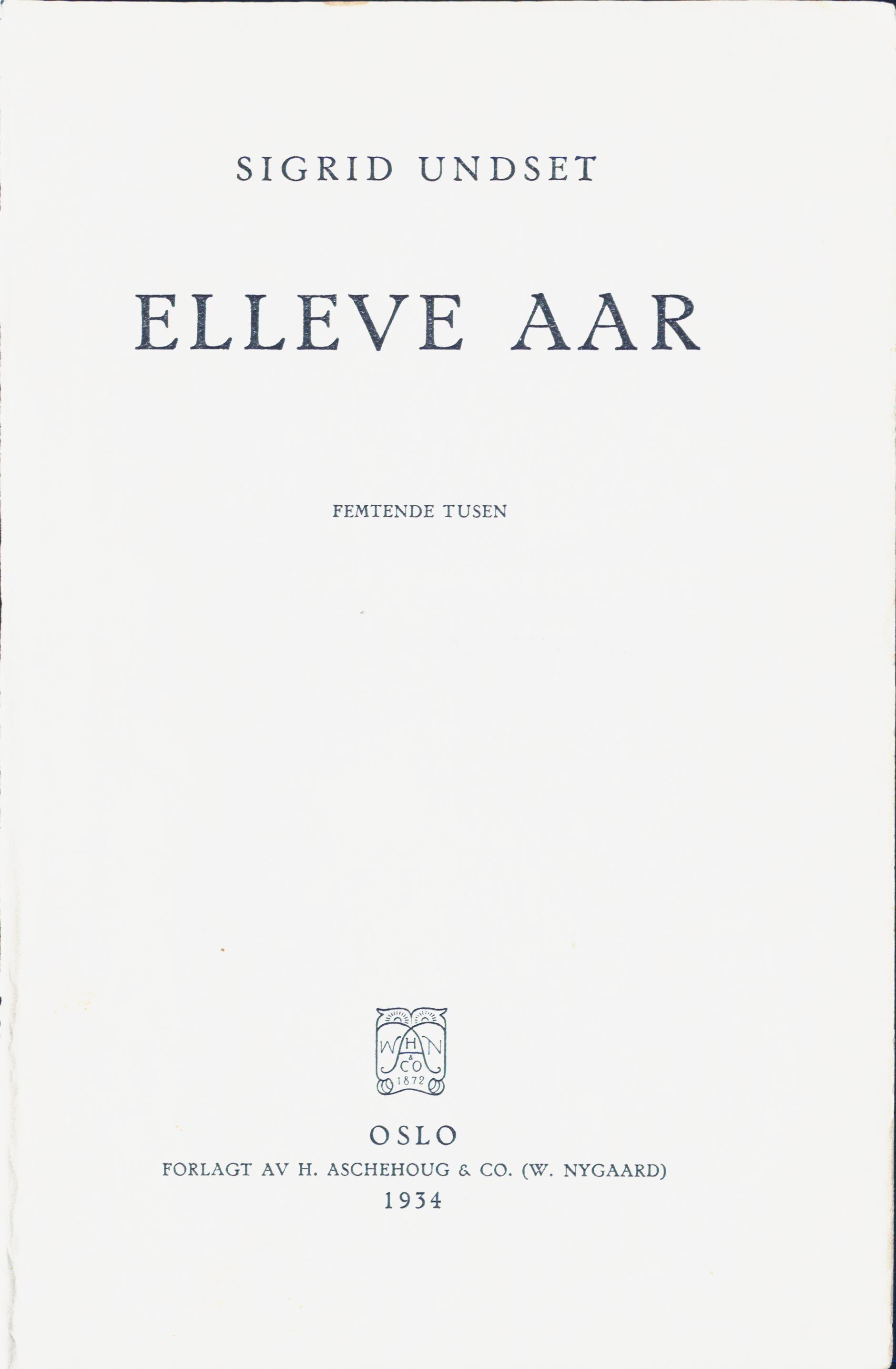 OSLO | FORLAGT AV H. ASCHEHOUG & CO. (W. NYGAARD) 1934 |