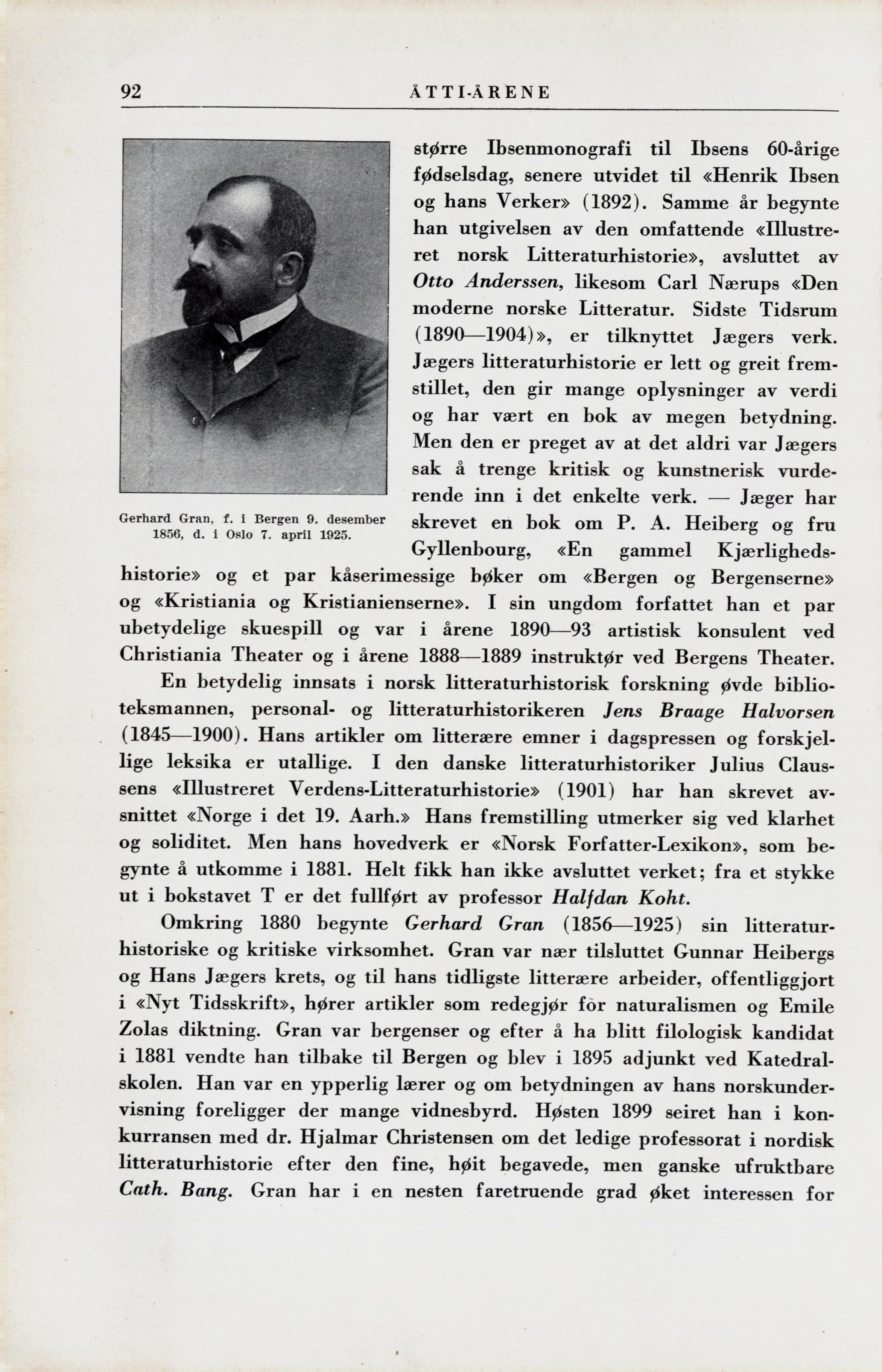 historiske og kritiske virksomhet. Gran var nær tilsluttet Gunnar Heibergs