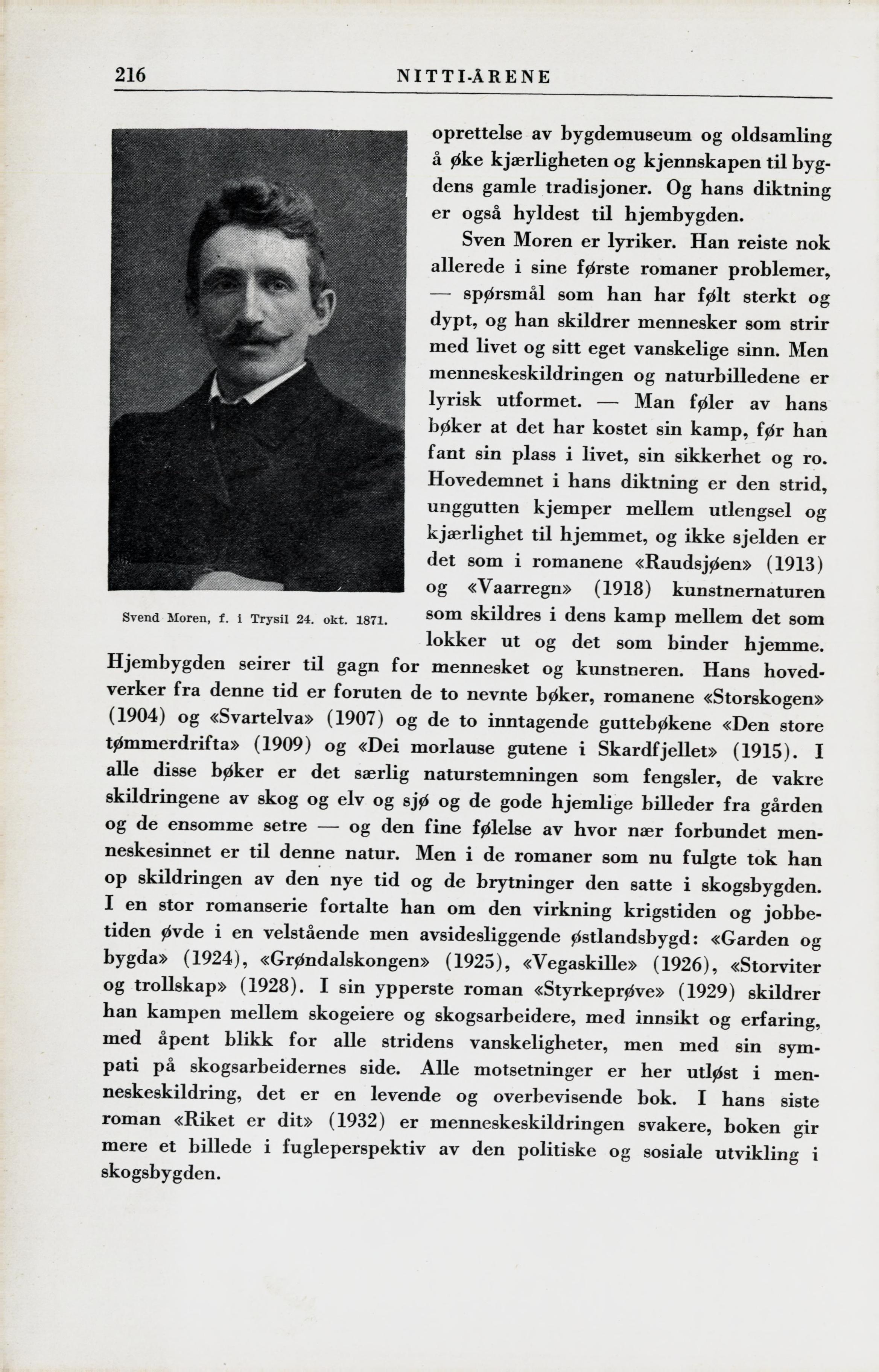 Svend Moren, f. i Trysil 24. okt. 1871. —80m skildres i dens kamp mellem det som