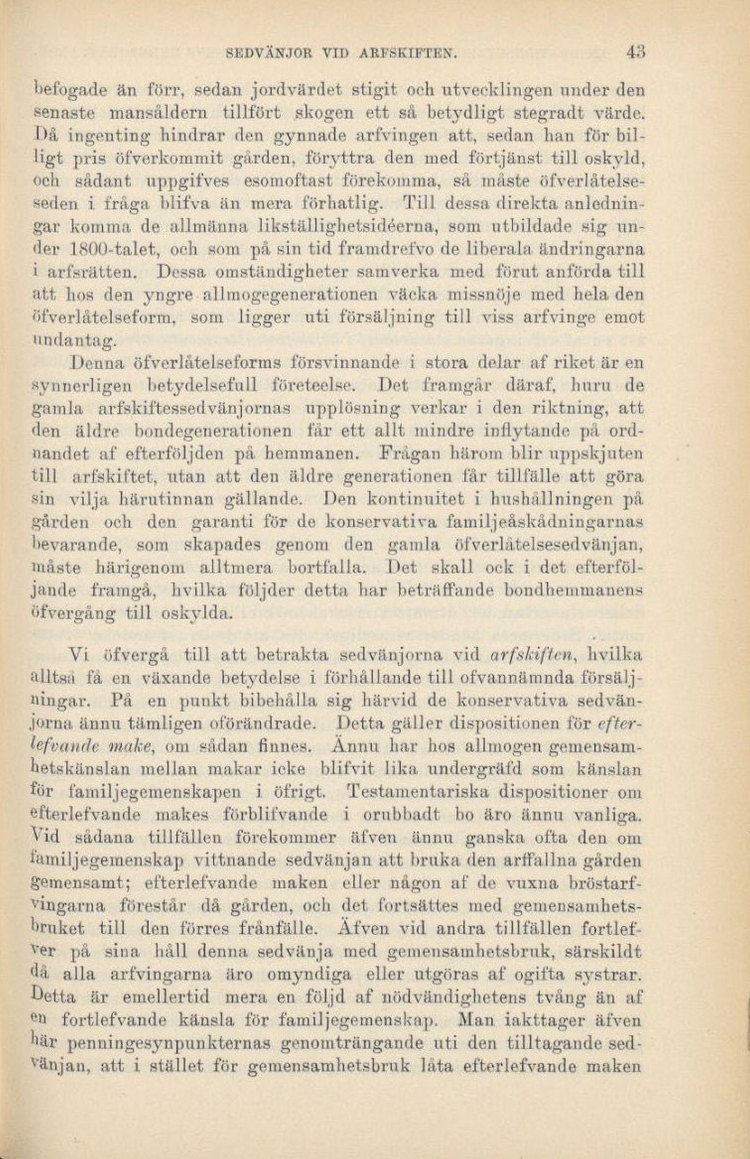 sed-vänjan, att i stället för gemensamhetsbruk låta efterlefvande maken